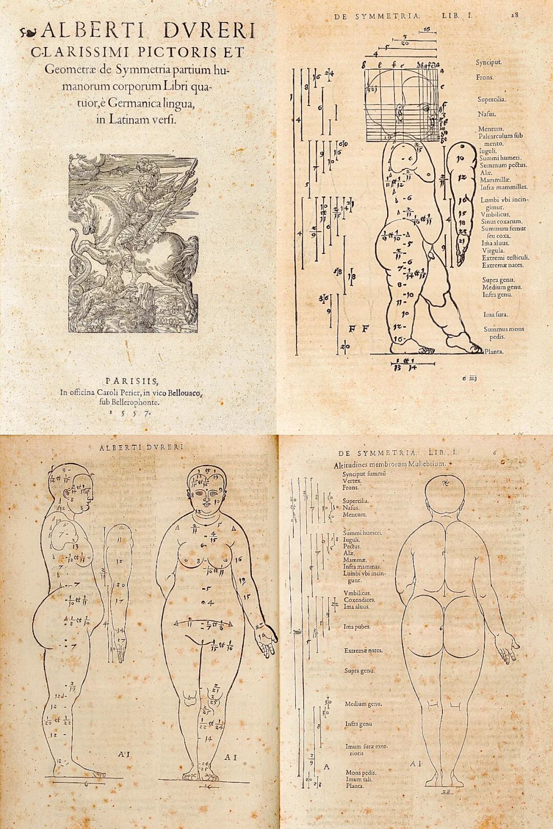 镜数学模拟法;这里丢勒还论述了面相学。第四卷书专门讨论运动原理。此书汇集了丢勒27年来对人体解剖学研究的结晶。