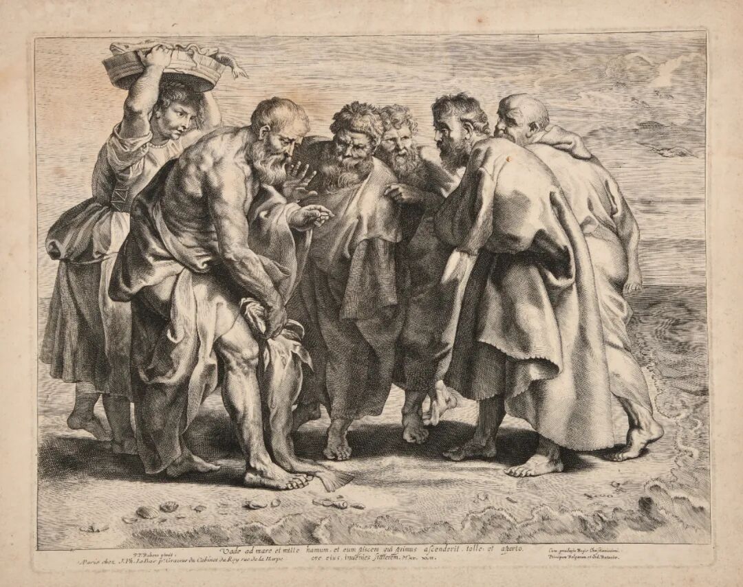 鲁本斯铜版画 《圣·彼得在鱼中发现硬币》 1620年出版