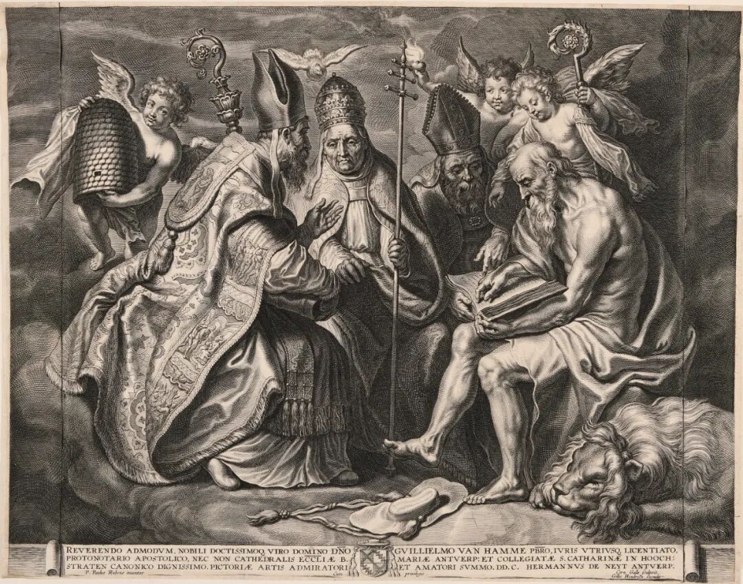 鲁本斯铜版画《四位教父》 1646年安特卫普 Gillis Hendricx出版