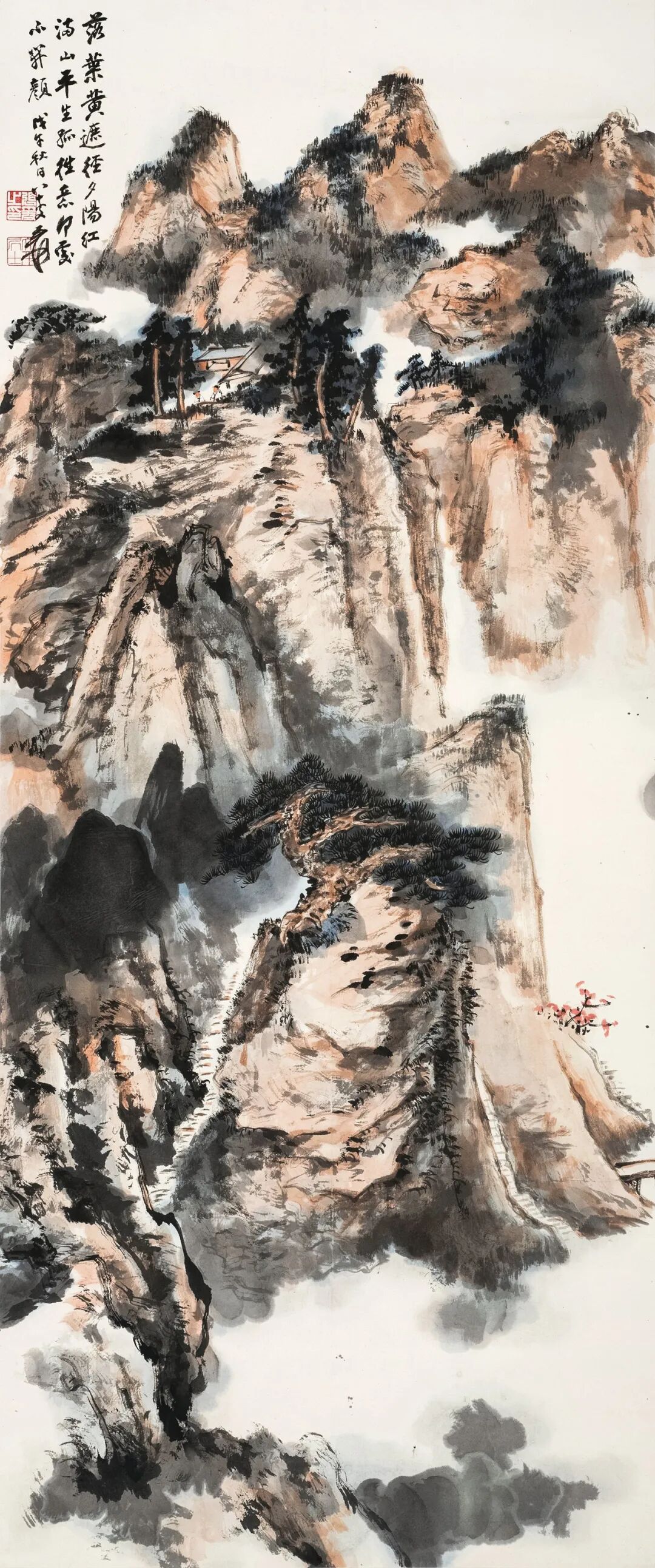 拍品估价:800,000 - 1,200,000 人民币题识:落叶黄遮径,夕阳红满山。平生孤往意,何处不开颜。戊午秋日八十叟,爰。