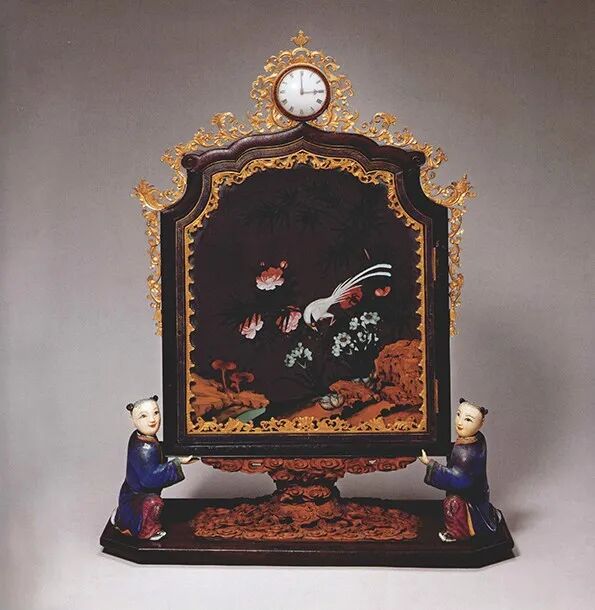 而本品最令钟表收藏界瞩目的,是框架内部隐藏了一道镌刻了“大清乾隆御制安佑宫二”的楷书款识,说明了此钟曾经为清代宫廷收藏,陈设在著名的皇家园林圆明园安佑宫之内。机芯上刻有英文款“RoltPhilpLondon”,机芯左上角的钟碗上则铸有“张兴记”的铺号款识。这在传世的精品自鸣钟珍品中非常罕见,为论证乾隆时代同类精品自鸣钟及其来源提供了难能可贵的文字证据,更全面地解读此钟的款识及背后的历史意义。