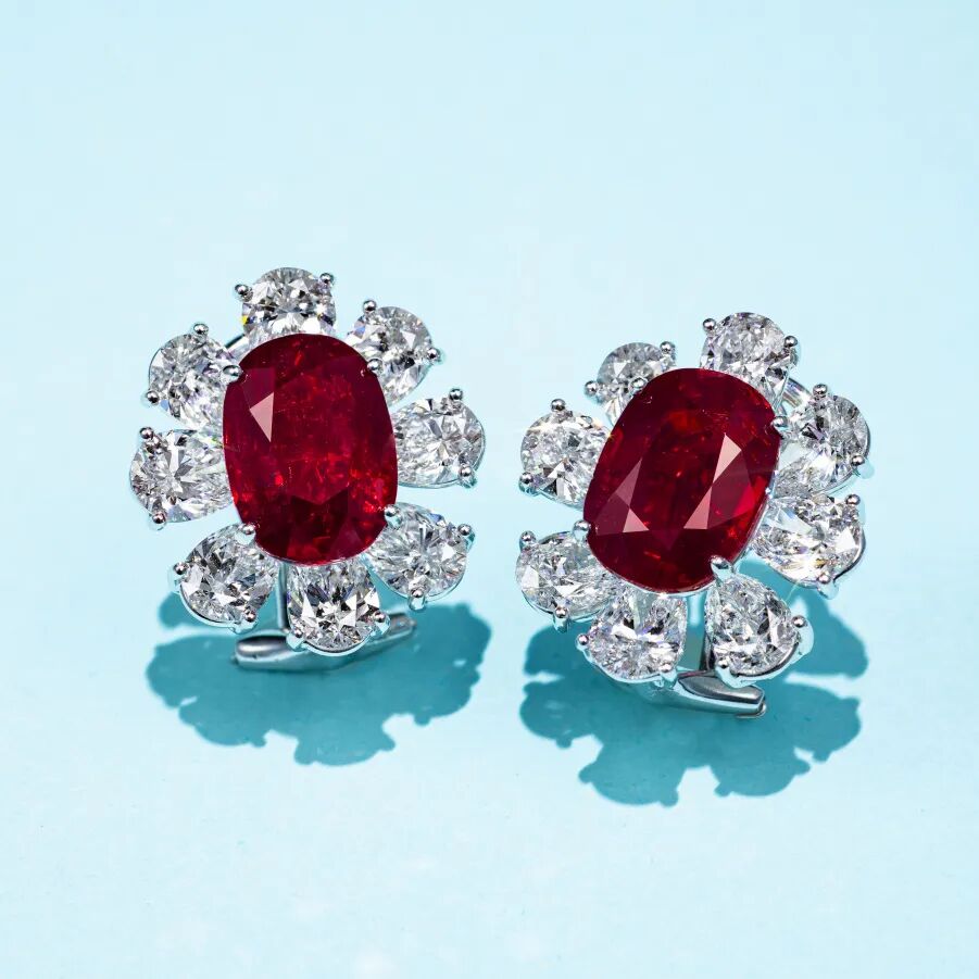 5.12 及 5.03 克拉緬甸「鴿血紅」紅寶石配鑽石耳環,未經加熱