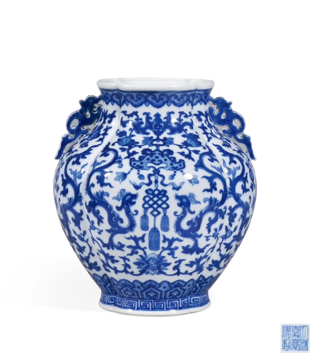 Lot3656 清嘉庆 青花吉庆有鱼纹夔龙耳如意尊拍品估价:2,000,000 - 3,000,000 人民币