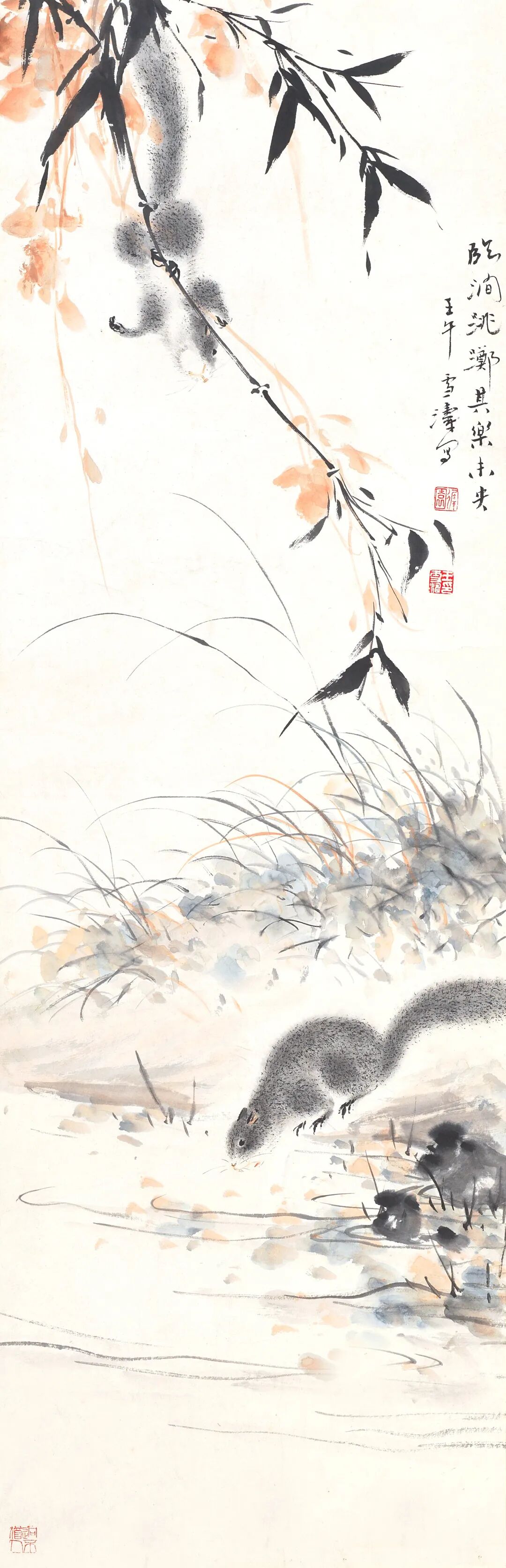 款识:临涧跳踯,其乐未央。壬午,雪涛写。