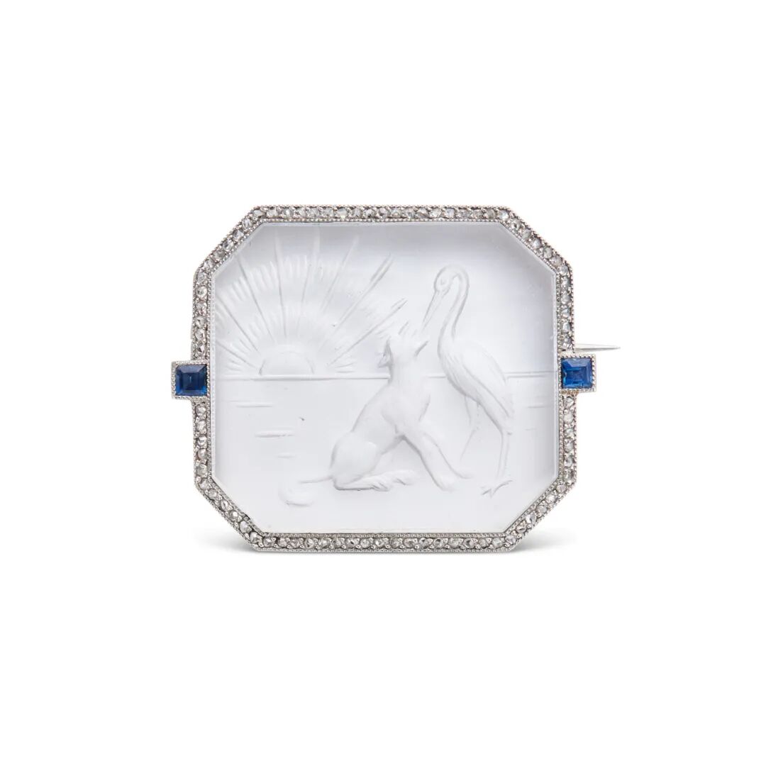新艺术风格 “FABLE DE LA FONTAINE LE RENARD ET LA CIGOGNE” 石英、蓝宝石和钻石胸针