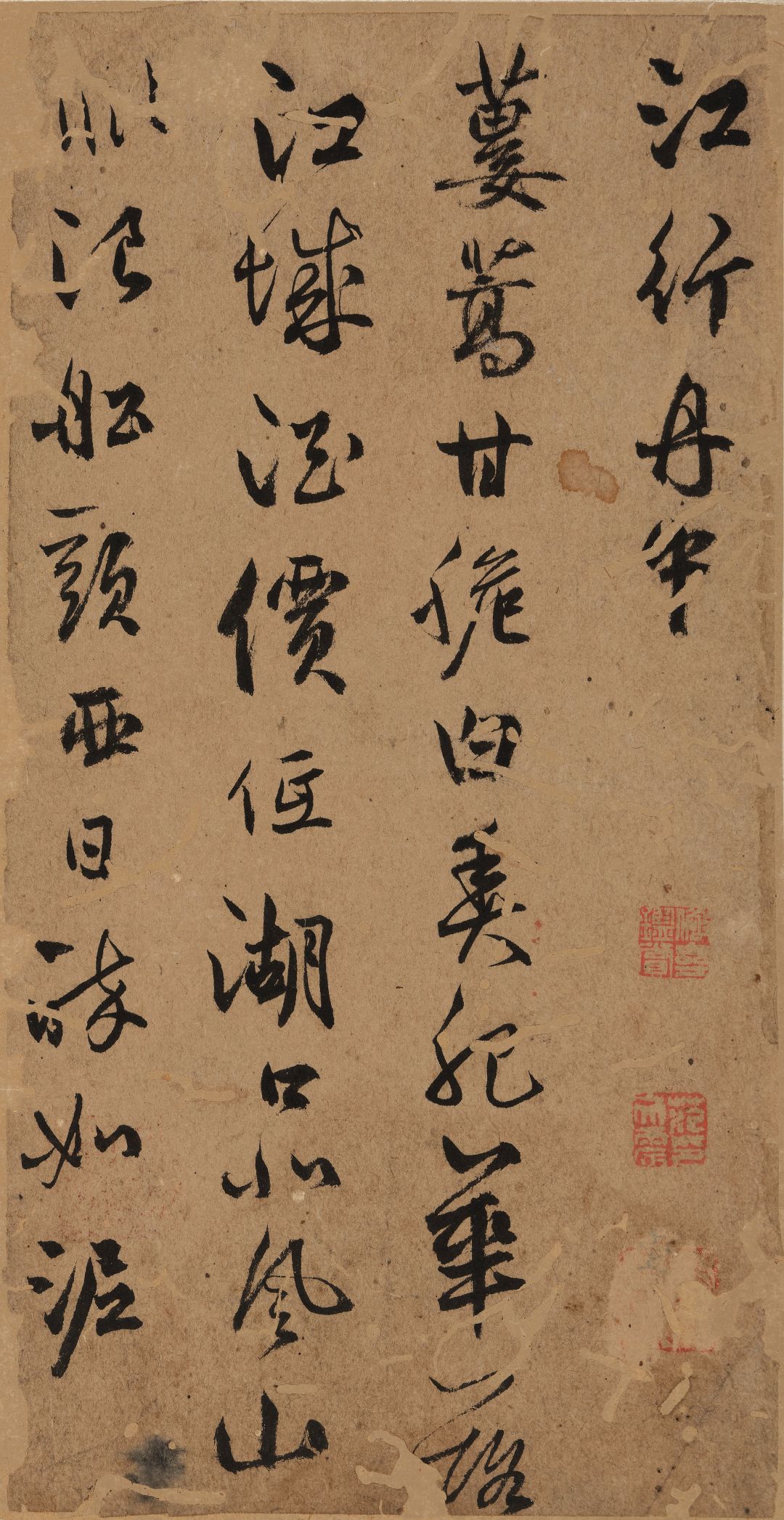 第三,《草书困学斋诗册》抄录了鲜于枢23首七绝,全部是遗佚之作,也是元代诗歌史上的遗珠。鲜于枢擅诗,但他生前未及编印自己的诗文集,后人辑录有《困学斋杂录》《困学斋诗集》,但所存无多。这23首诗,开篇《江行舟中》六首,提及湖口(属九江),汉口、汉阳(属武汉),凤城(位置不详,诗句曰“此去维扬尚二千”,定在长江中游)等地名,这应当是对他壮游长江的描绘,可补鲜于枢生平行踪之阙载。