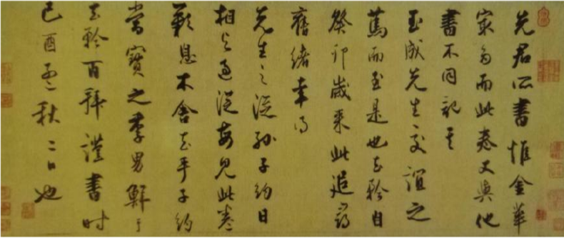 2.从书法体系来看,赵孟頫取法王羲之内擫一路(下及唐人李邕),转角多方折;鲜于枢取法取法王献之外拓一路(下及唐人颜真卿、怀素),转角多圆转。
