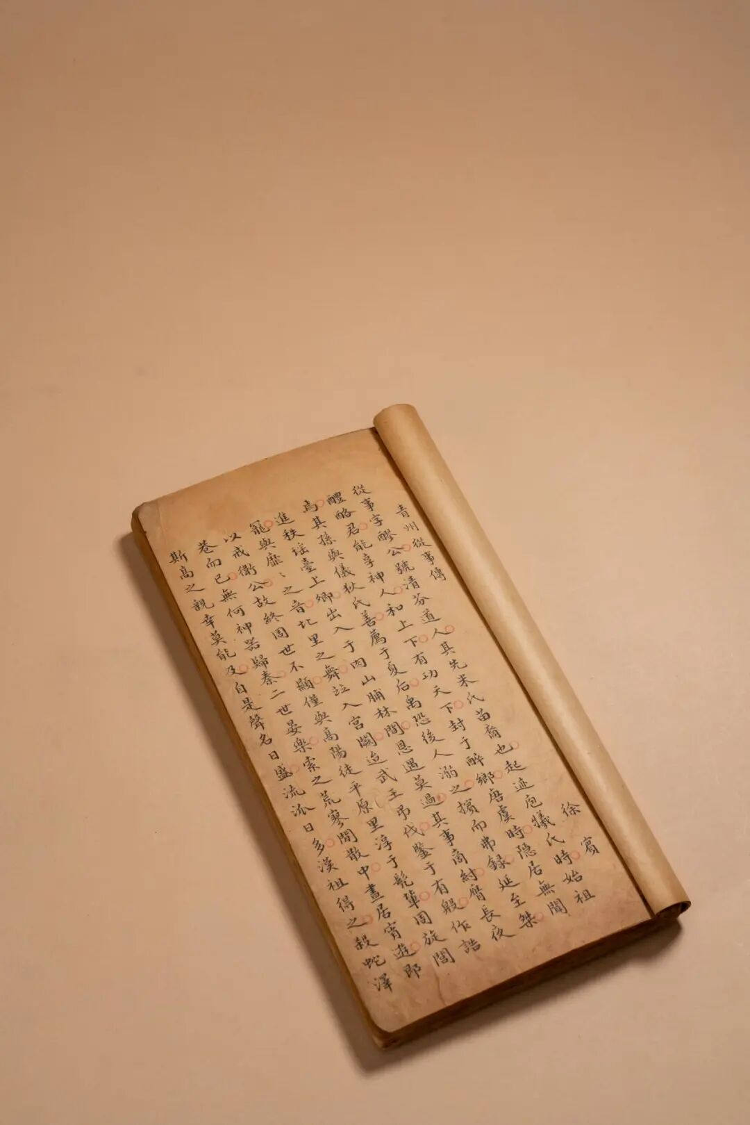 此抄乃是江苏丹徒官员、藏书家、书画家张骐手录一、二十篇文章,原装一厚册,品相善好。全文以工笔小楷写就,一丝不苟,严谨整饬,文雅不凡,全文朱笔圈点,以流丽的小行楷评点,精美秀雅,功力尤深。尾落款“乾隆戊寅春仲之望张骐学于氏,偶识于外戚颜氏贻燕堂之南楼,时客渐归里之第二年也。”此本亦可作为江苏苏州名人雅士之文献。