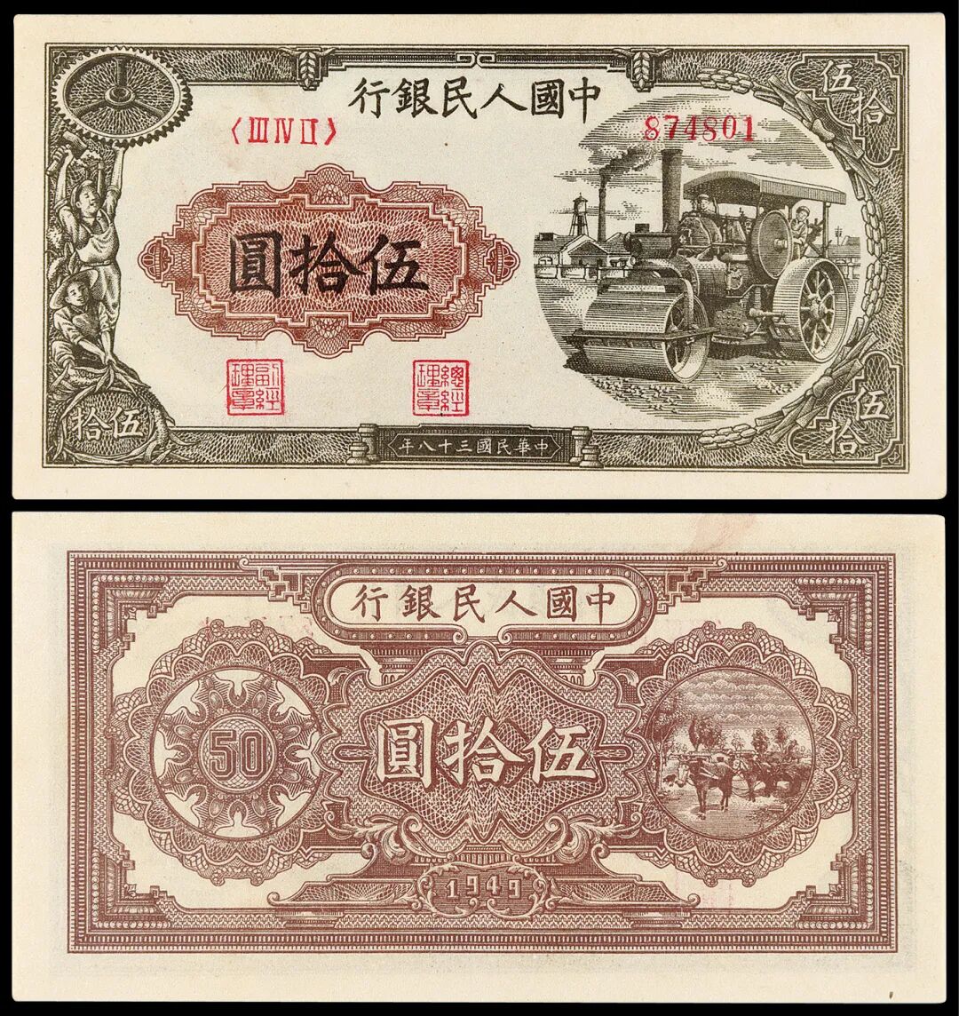 1949年第一版人民币伍拾圆“压路机”/PMG 64EPQ