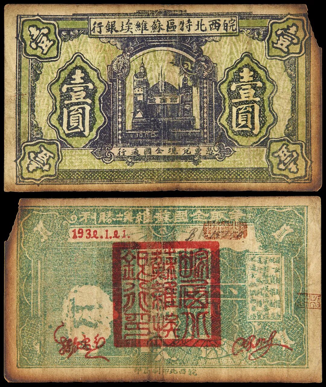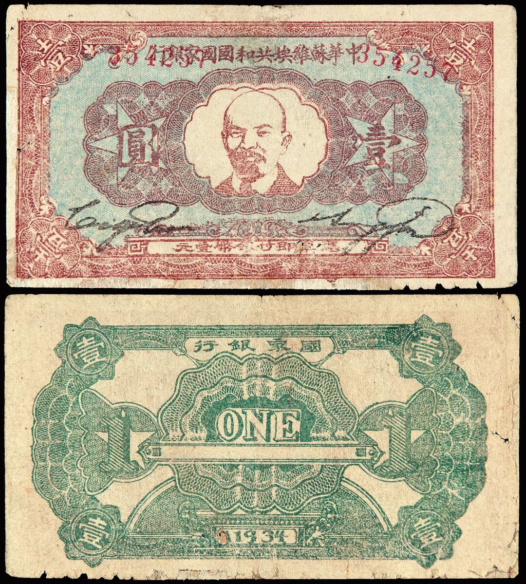 1934年中华苏维埃共和国国家银行“A1934”版银币券壹圆