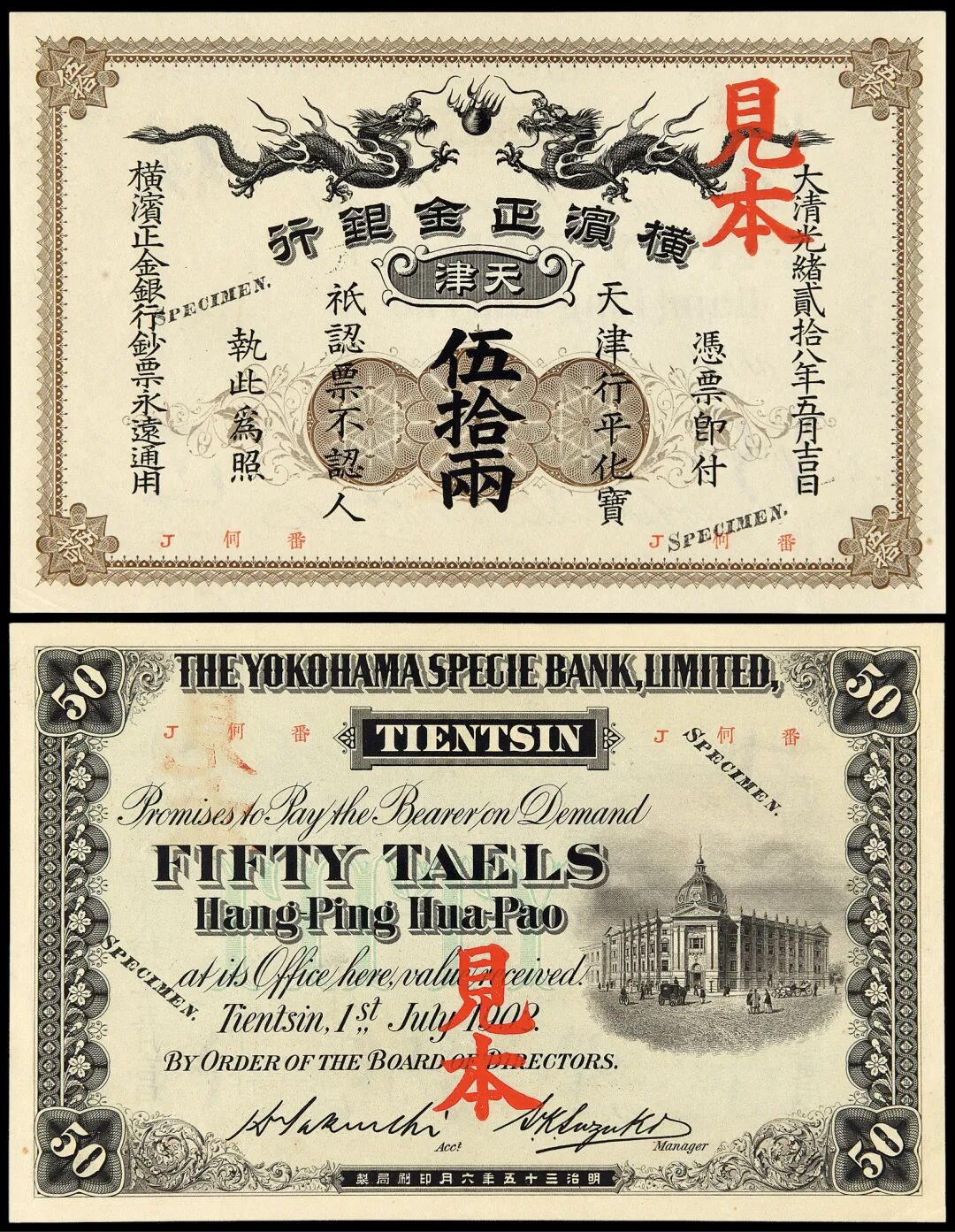 光绪二十八年横滨正金银行银两票天津伍拾两样票