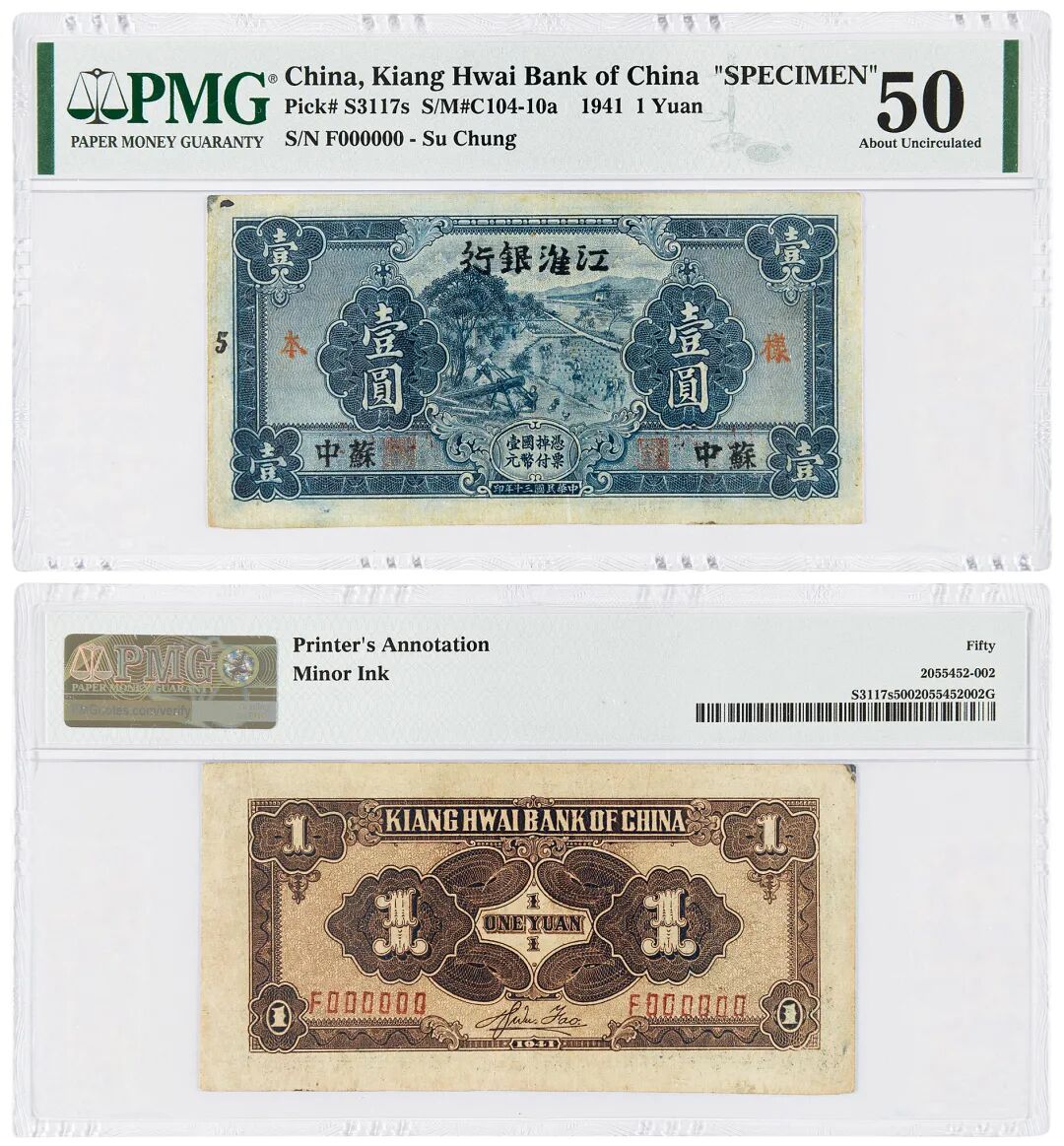民国三十年江淮银行国币券壹圆样票/PMG 50