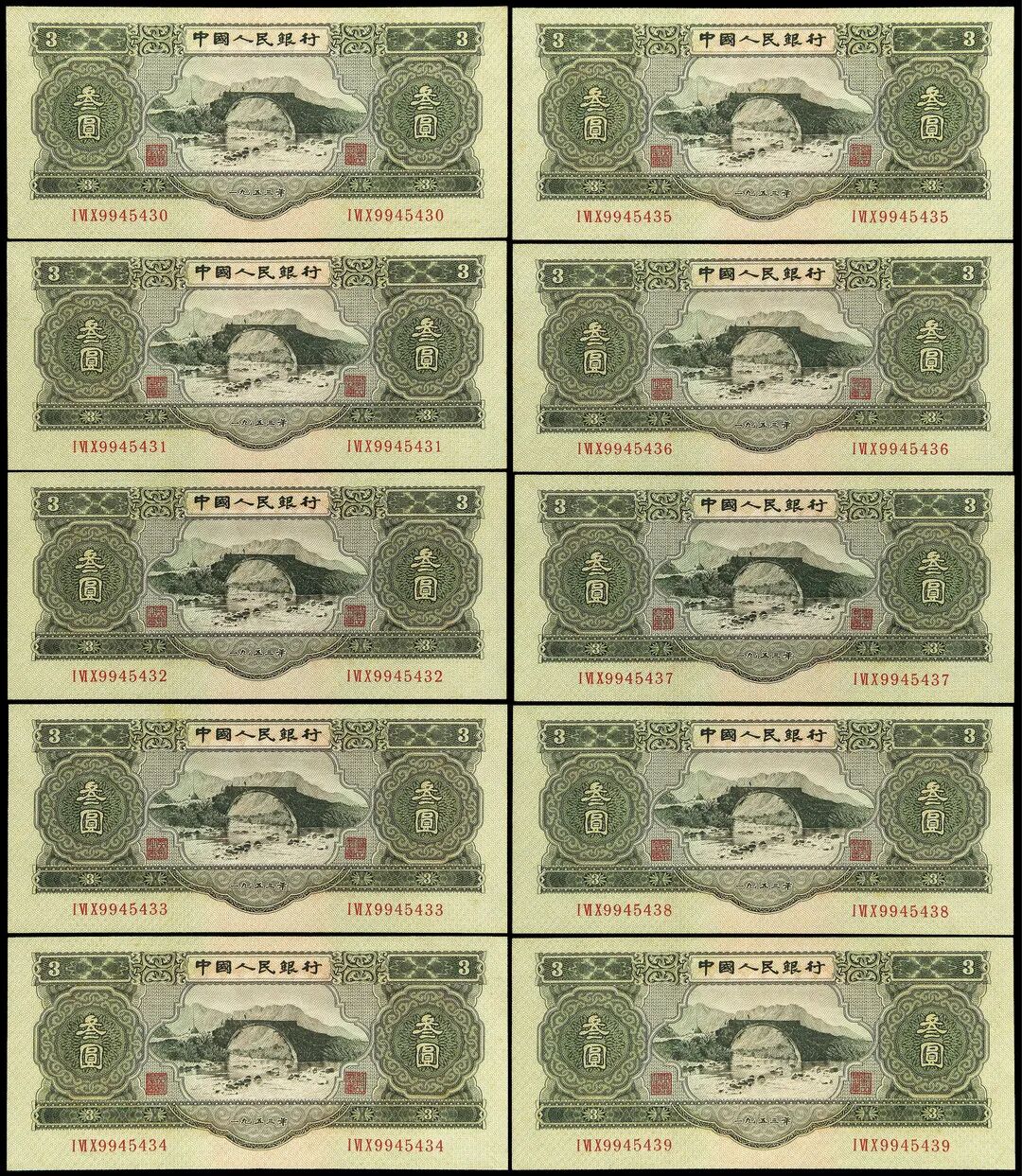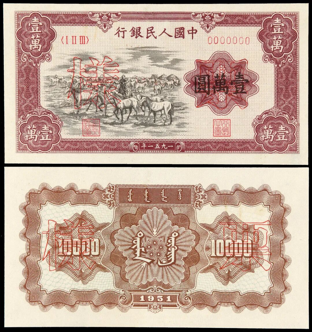 1951年第一版人民币壹万圆“牧马”正、反单面样票