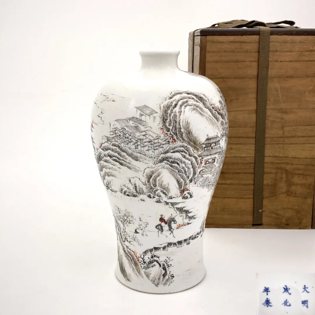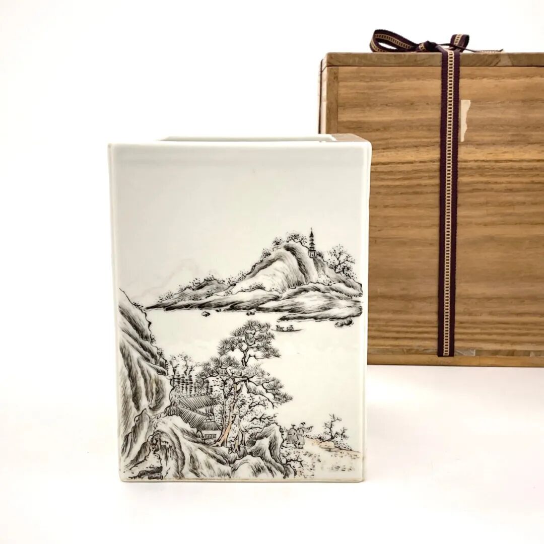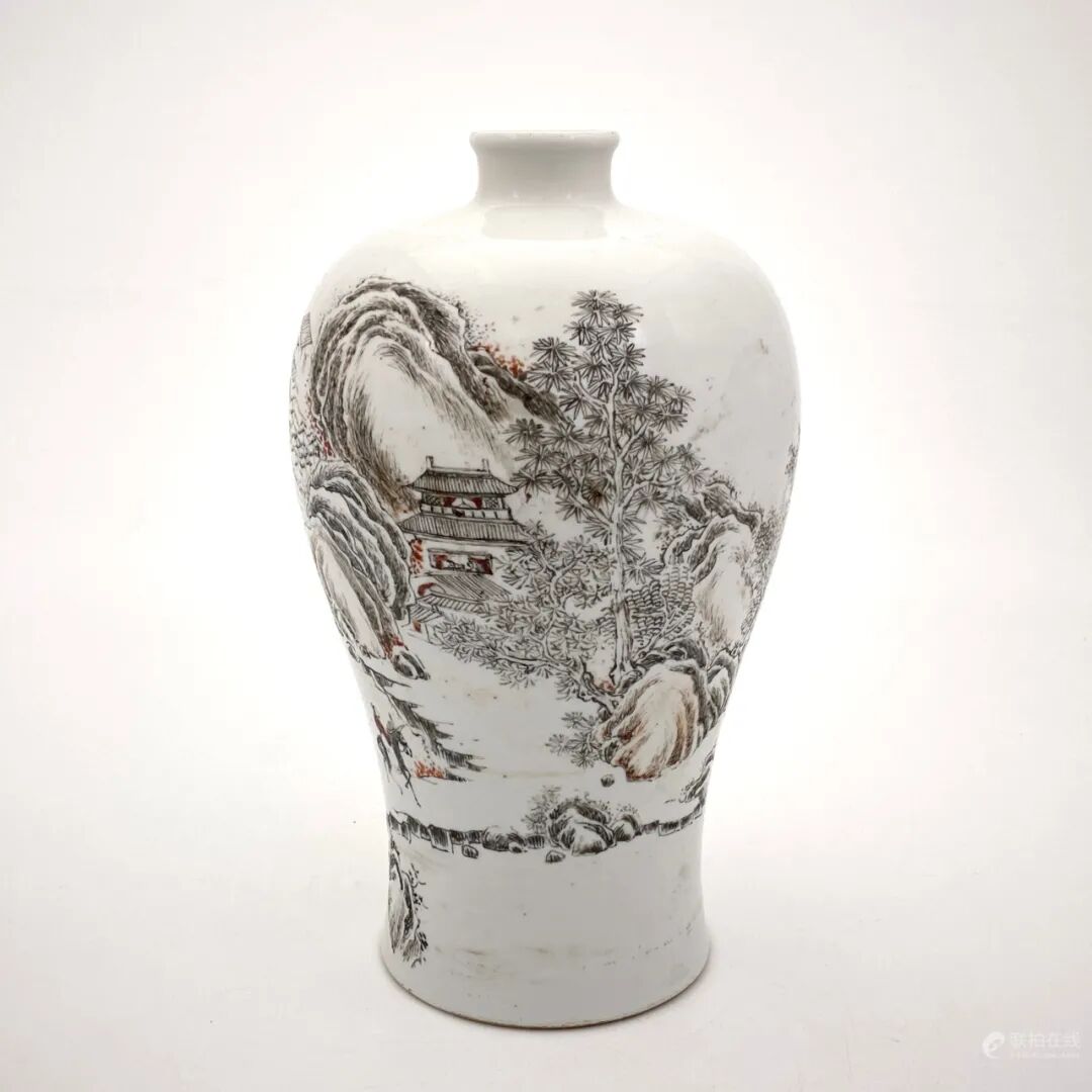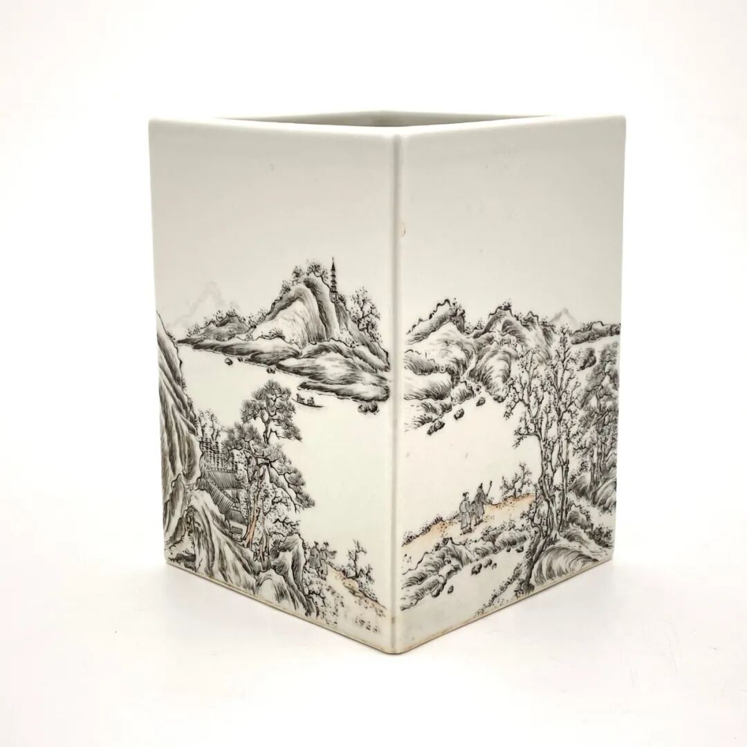 Lot 344 “洪宪御制”款 墨彩山水人物纹方瓶
