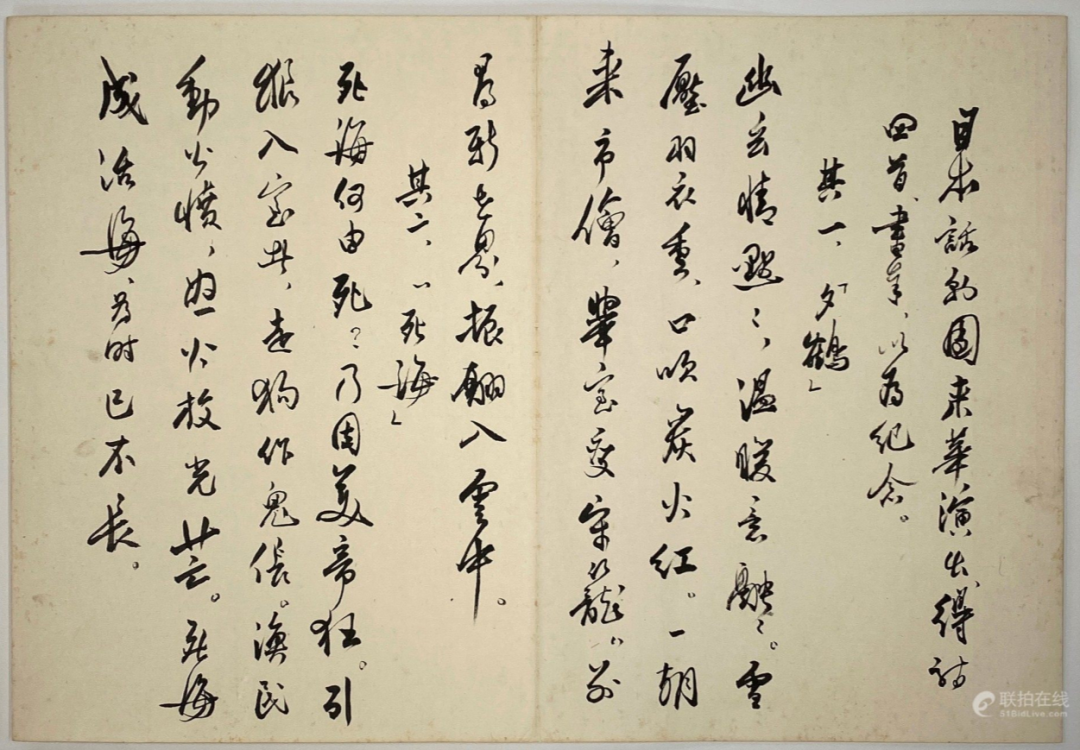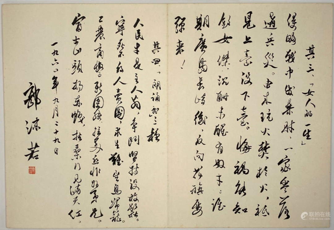 拍品估价:100,000 - 200,000 日元拍品估价:100,000 - 200,000 日元拍品估价:100,000 - 200,000 日元拍品估价:800,000 - 1,500,000 日元Lot 605 郭沫若 1960年 行草书 演出目录四首折帖