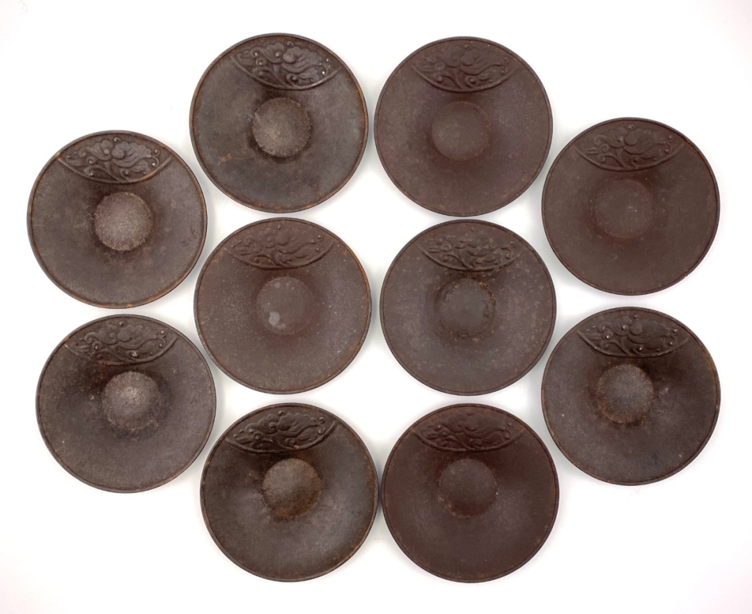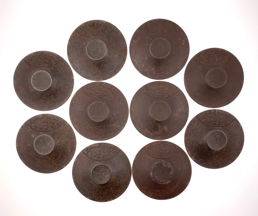 拍品估价:100,000 - 200,000 日元拍品估价:100,000 - 200,000 日元拍品估价:100,000 - 200,000 日元拍品估价:100,000 - 200,000 日元拍品估价:100,000 - 200,000 日元拍品估价:100,000 - 200,000 日元拍品估价:100,000 - 200,000 日元拍品估价:300,000 - 600,000 日元Lot 442 “宗世”造 铁打出花纹茶托 十件一组