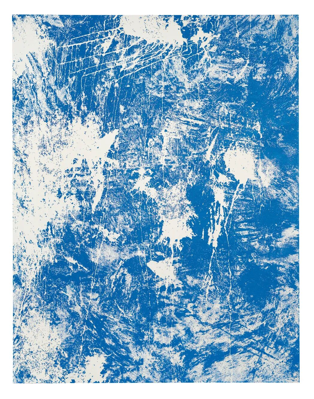 1996年的《無題》正是以上述方式改良而成的概念性繪畫,斯廷格爾意圖挑戰大眾對於繪畫的界定與認知。與其用畫筆在畫布上細筆描繪,他將薄紗鋪在厚實的天藍色繪畫層以及已經上了白色油彩的底層畫布上。最後將薄紗取下,之後形成的紋路既粗獷又有顆粒感,展現令人屏氣攝息的動態。斯廷格爾的作品飽富詩意,引領觀者進行對話,並不只是帶有偶發與觀念性的一場表演,從而更引起廣泛的思考,承載著人們集體的意識與認知。此作,恰是學術與市場兼具的最佳演繹。