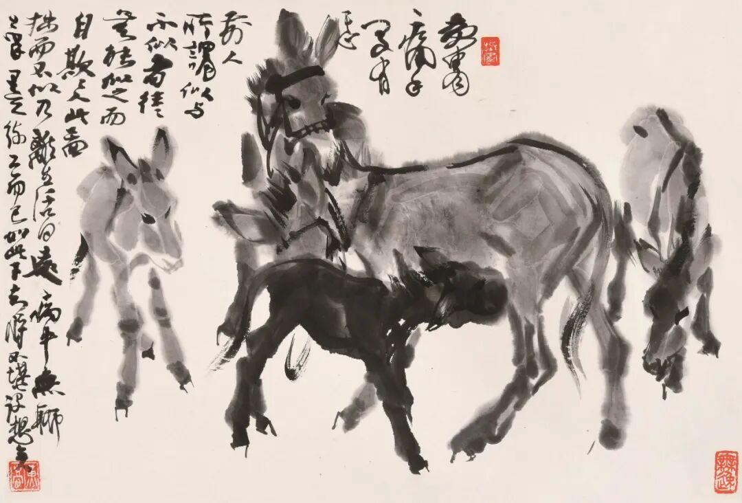 《群驴》体现了他的创作思想,即重视造型与笔墨的统一,在不轻视发挥笔墨传情效能的同时高度讲究造型的基础作用,从而做到把准确精致的造型与放笔挥洒的笔墨结合起来,形似神足而又气韵生动。