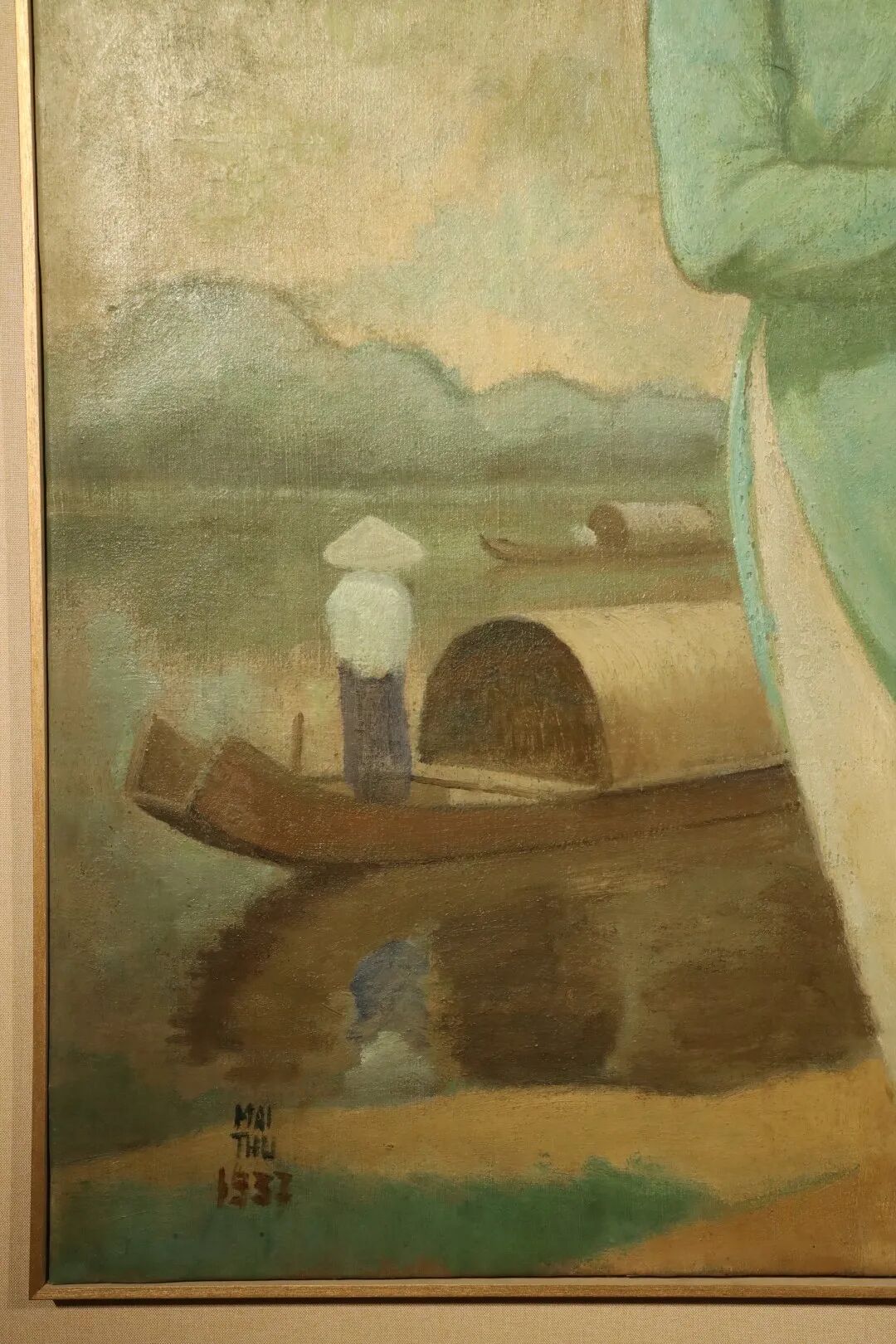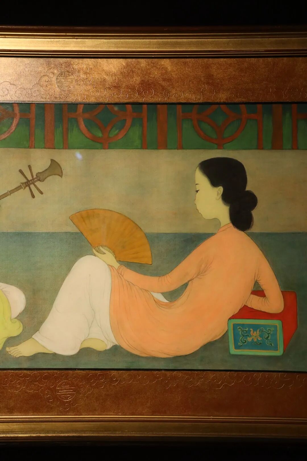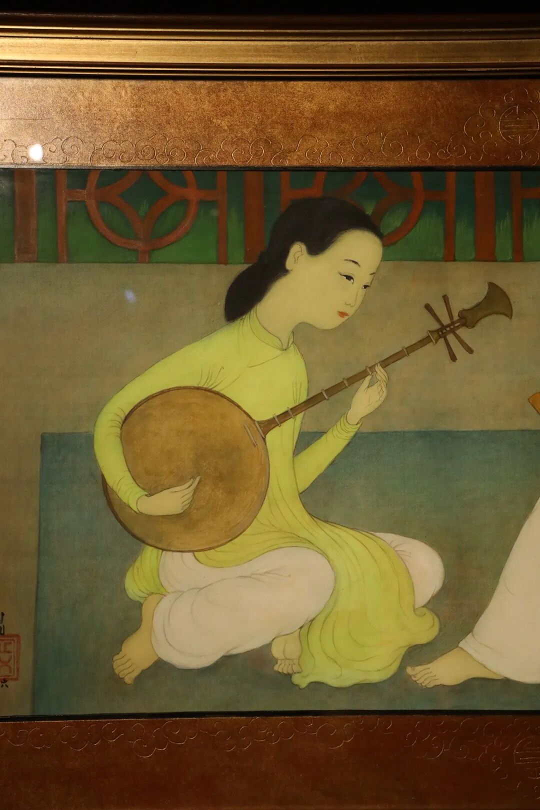 我非常喜欢枚中栨 (梅忠恕)的《旋律》,因为它融合了艺术家在视觉艺术和音乐方面的精湛技艺。他是一位古典音乐的天才,十分钟情于月琴(Dan Nguyet)的演奏,而这种月亮形状的越南传统双弦乐器,正是本画的主角之一。这幅 1960 年代的画作描绘了一位女士在阳台上为她的同伴深情地演奏,静观之下,彷佛可以想象枚中栨 (梅忠恕)当时一边聆听越南唱片,一边勾勒这幅精致而充满活力的绢本作品的有趣过程。