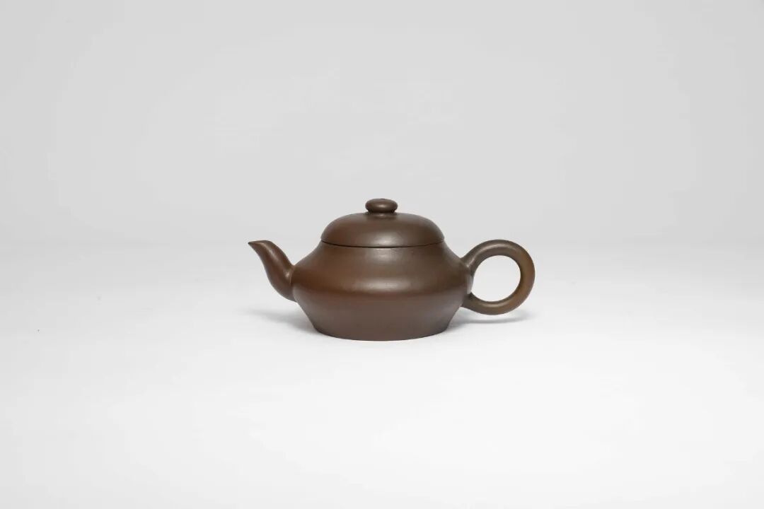 品相:盖墙一处小磕,壶口内沿有几处蚂蚁咬,壶身与盖面有起小泡,整体应窑变为紫褐色,实为朱泥胎。