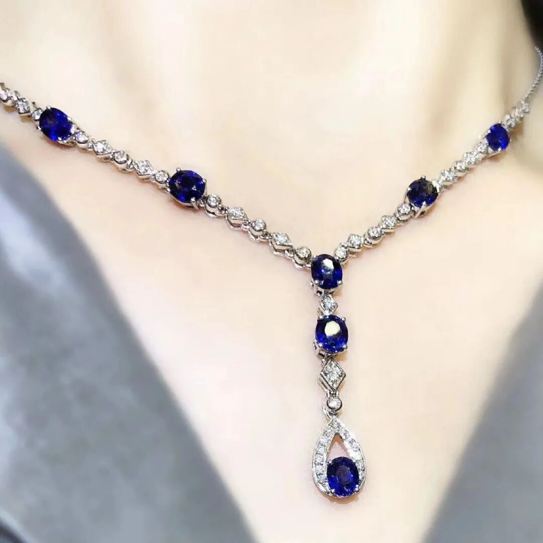 18K白金镶蓝宝石项链