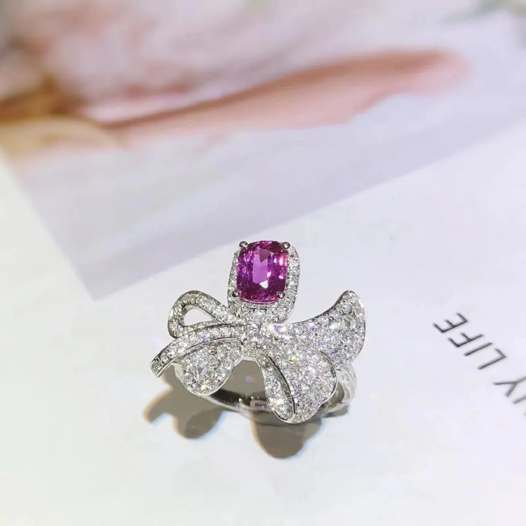 1.16克拉天然粉蓝宝蝴蝶结戒指