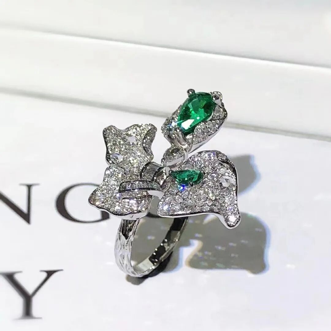 18K白金祖母绿花形戒指