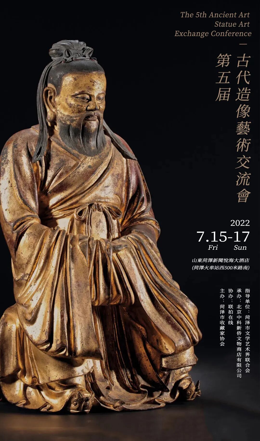 5.7月16日下午14:00,在五楼金色大厅所有藏友将自己的藏品进行展示并交流,届时也邀请各地造像收藏家及有收藏爱好的企业家共享交流。下午18点五楼七星厅自助晚宴。