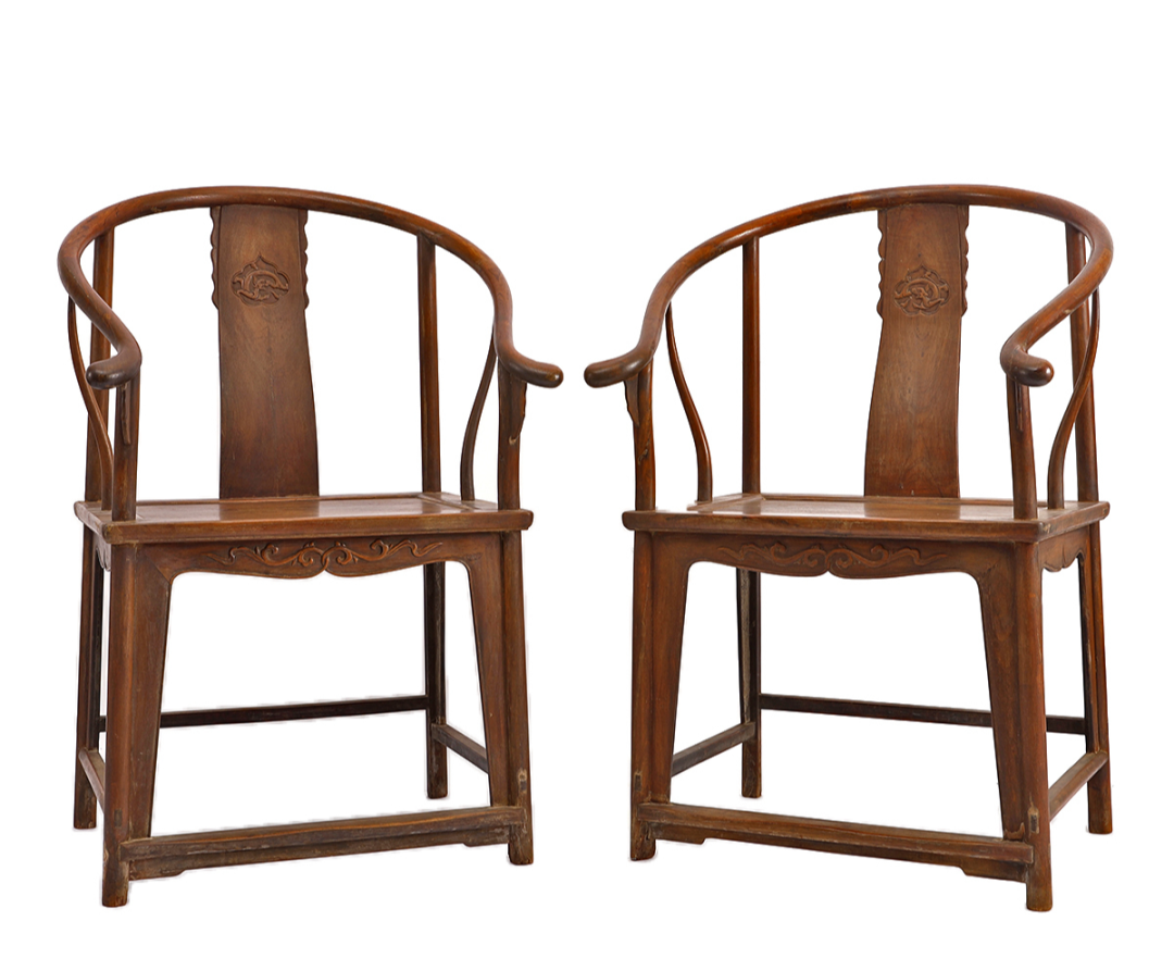 高:15.6cm 直径:31cm 重:3989.2g说明:暖炉以精铜锻打锤揲而成,分炉身及炉盖两部分,设子母口。炉盖圆形穹顶,盖、身均凿刻百子婴戏图,镂空的孔洞以便烟气散发。婴孩眉清目秀,三五成组,或舞拳,或敲锣,或擂鼓,或赏画,或点爆竹,形态各异,天真烂漫,画面充满欢快的气氛,惹人喜爱。画面布局合理,繁而不乱,雕工精致,令人惊叹。婴戏图有多子多福,生活美满的象征。胡文明款器物始于晚明,清代仍有延续,与明代所制器物不同,清代制作的很多用模具注铜而非纯手工捶打,铜质与工艺更显逊色。此暖炉器壁较厚,体积硕大,色皮润厚,工艺精湛,具有明代胡文明制器的工艺特征,堪称此类之精品。说明:盘口,细长颈,折肩,微弧形腹,是宋代经典的纸槌瓶造型。瓶满施粉青釉,釉汁厚润如脂,幽微素净,温润如玉。整器光素,极好的呈现了作品的釉色之美,与流畅简洁的线条搭配,相得益彰。此时的龙泉窑在审美上受到了北宋文人士大夫阶层影响,追求简约宁静的艺术风格,烧造祭祀及礼仪用器,依“名古器”为造型依据,使产品件件有典,崇古尚古的艺术追求。此瓶荟萃了龙泉青釉最为人称许的特质,以其造型之秀美,釉色之纯净俏丽,风格之敦厚,显示出迷人的艺术魅力。说明:插屏由底座和屏两部分组成。屏为碧玉质,色泽沉稳,绿意盎然。长方形,正面以高浮雕饰山水亭台楼阁松下高士为主题,山水布局错落有致,意境旷远清雅。画面中,山顶白云飘浮,山石嶙峋峻峭,苍松及楼宇掩映其中。曲折逶迤山径上有五位皓首高士,或单独坐于松下,向前行走或高谈论道,姿态细腻传神,栩栩如生。背面以阴刻描金技法修饰劲松山水图,正反呼应,相得益彰。配原装木座,同样施精巧之工,浮雕夔龙纹,皮色深沉滋润。屏风在家具中主要起遮蔽作用,插屏则放置案上,为陈设所用。因此插屏的画面上,更讲究装饰材料和表现内容。本件插屏整体构图疏密有致,画面丰满,呼应有序,雕工纯熟,技艺精湛,应为清代制玉作坊鼎盛时期之精品。1.高:100cm 椅面长:59.8cm 宽:47cm2.高:100.5cm 椅面长:59.8cm 宽:47cm说明:圈椅成对,以黄花梨为材。弧形椅圈,自搭脑伸向两侧,通过后边柱又顺势而下,形成扶手,末端外翻呈卷珠状,造型舒展大方。背板三弯式,弯曲线条流畅,两侧有一木雕成的挂角牙,中间有如意形开窗,边缘起阳线,内以浮雕螭龙纹装饰,装饰简约大气,保留黄花梨木材的自然纹理。鹅脖弯曲灵动自然。座面下有壸门券口牙板,牙板边缘起阳线,中间浮雕卷草纹。圆柱形腿,腿足间设方形步步高赶枨,脚枨下设刀牙板。圈椅用料考究,包浆厚重,配合以端庄的造型,得古朴之趣。