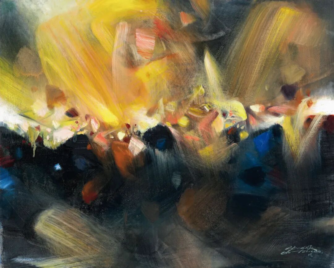 朱德群2005年创作的《热情的回响》是在图式、视觉上处于朱德群成熟时期的代表作之一,堪称其朱德群的标准件,底价190万。