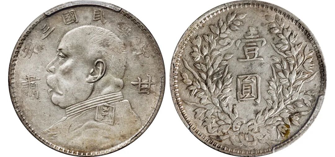 民国三年袁世凯像“甘肃”加字壹圆银币/PCGS XF45