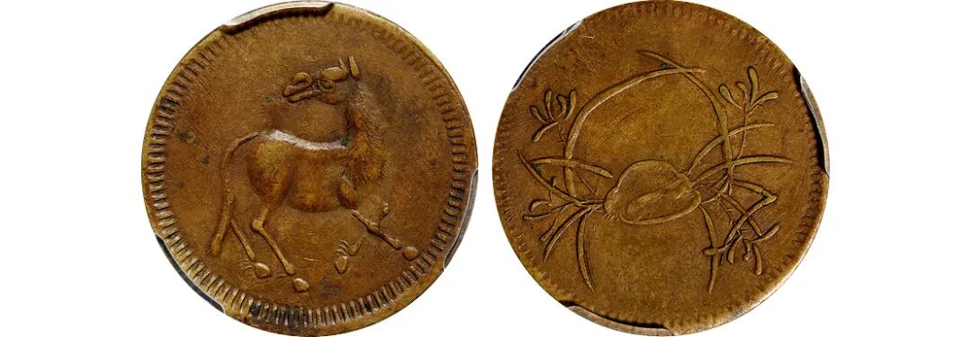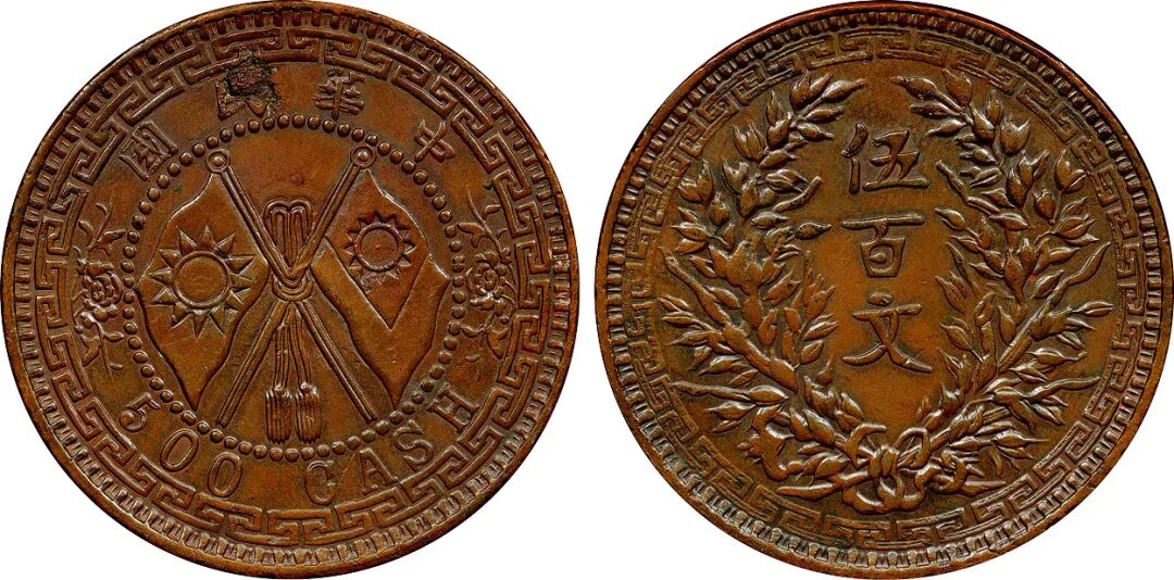 1932年中华民国河南双旗嘉禾伍百文铜币试铸样币/PCGS SP55