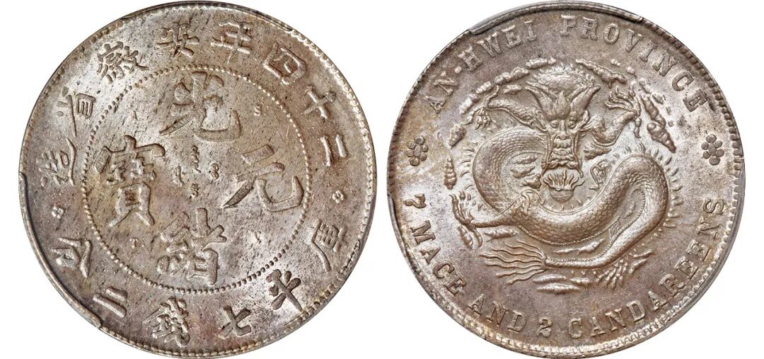光绪二十四年安徽省造光绪元宝A.S.T.C.版库平七钱二分银币/PCGS MS64