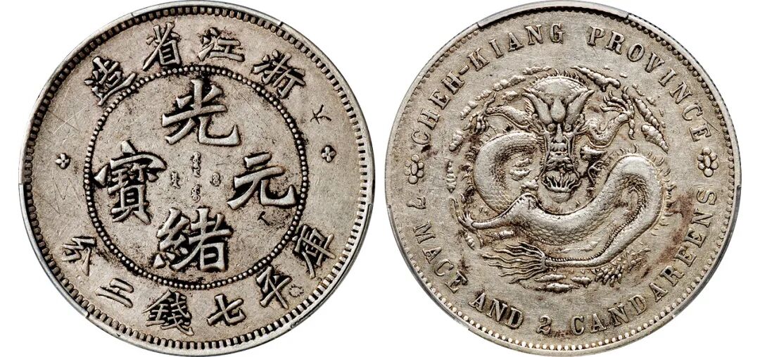 1899年“浙江魏碑”版光绪元宝库平七钱二分银币/PCGS XF Detail