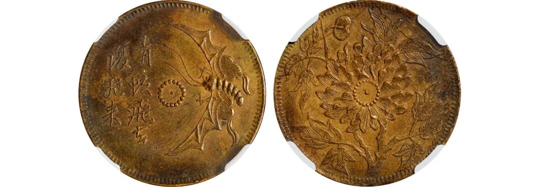 民国时期四川十文型“青蚨飞去复飞来”马兰黄铜币/NGC AU58
