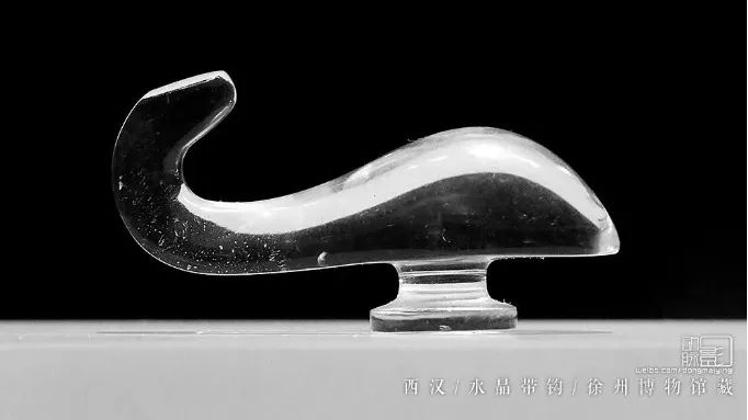 水晶带钩——带钩又称“犀比”,是古代贵族和文人武士所系腰带的挂钩,也是身份的象征,一般用青铜制成,也有用金银玉石的。而用水晶做带钩,西汉江都王刘非和西汉楚王刘注都试过,效果还不错~