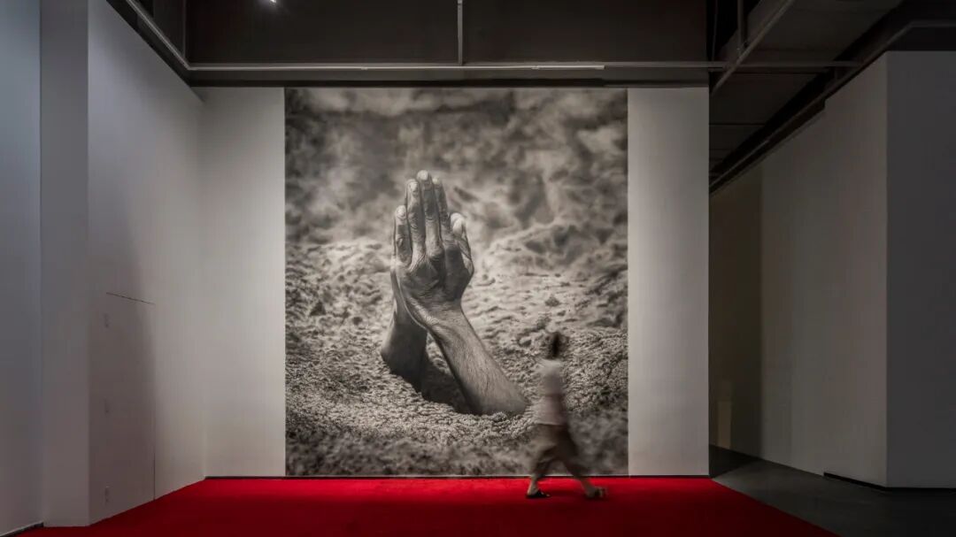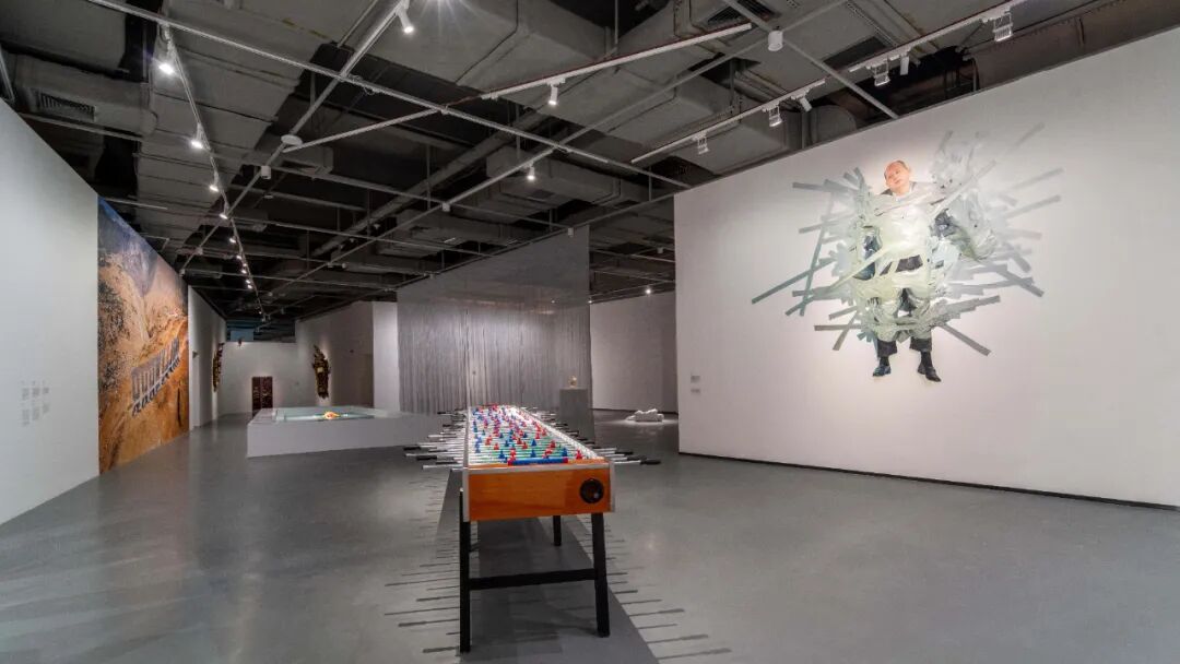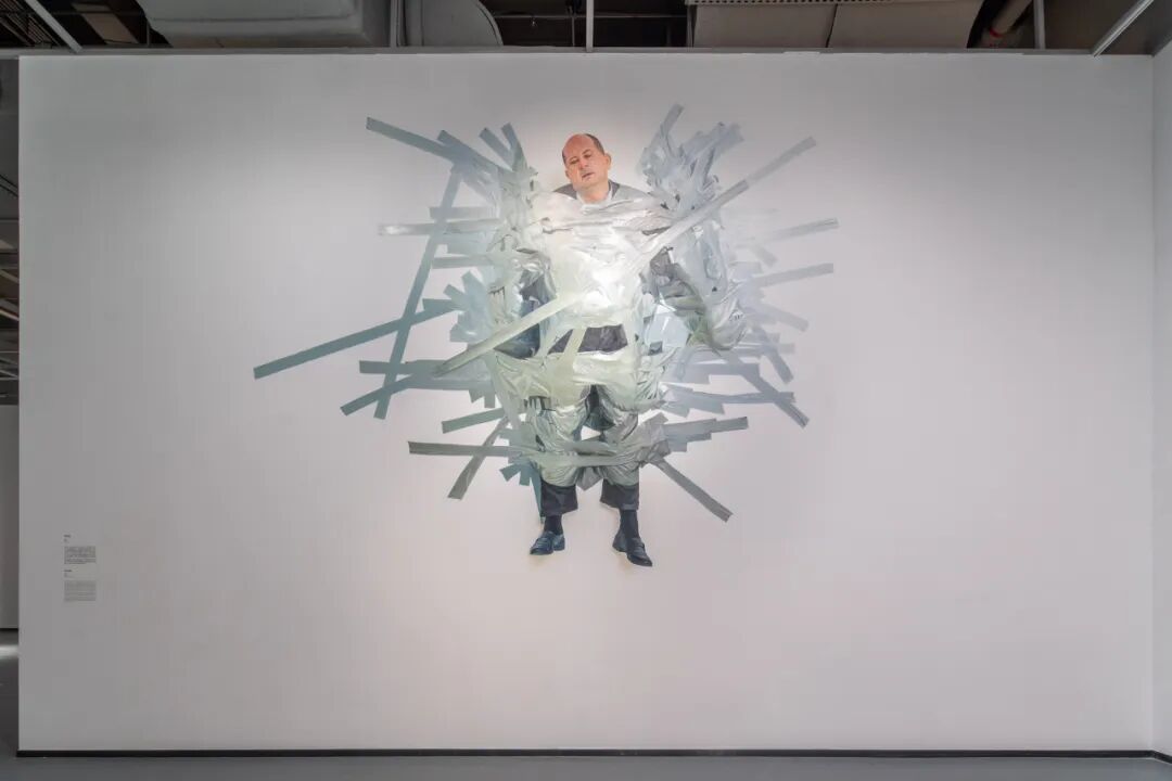 此次深圳展出的还有他在2021年与2022年创作的最新作品,如2021年创作的装置作品《张三》,延续了卡特兰根据不同场地,凭空构建无家可归之人可能生活场景的创作,表达了艺术家对于人类处境不完满的思考:如何在比自己不幸的人面前审视自己的人生;2022年创作的墙绘作品《无题》,呈现了用强力胶将一个艺术经纪人粘在墙上的画面,这件作品是对他1999年同名行为作品的视觉再现,当一个真人被粘在墙上,这个人还是艺术家的经纪人,观众感受到的不仅是视觉震撼,还有对艺术与整个行业的反思。