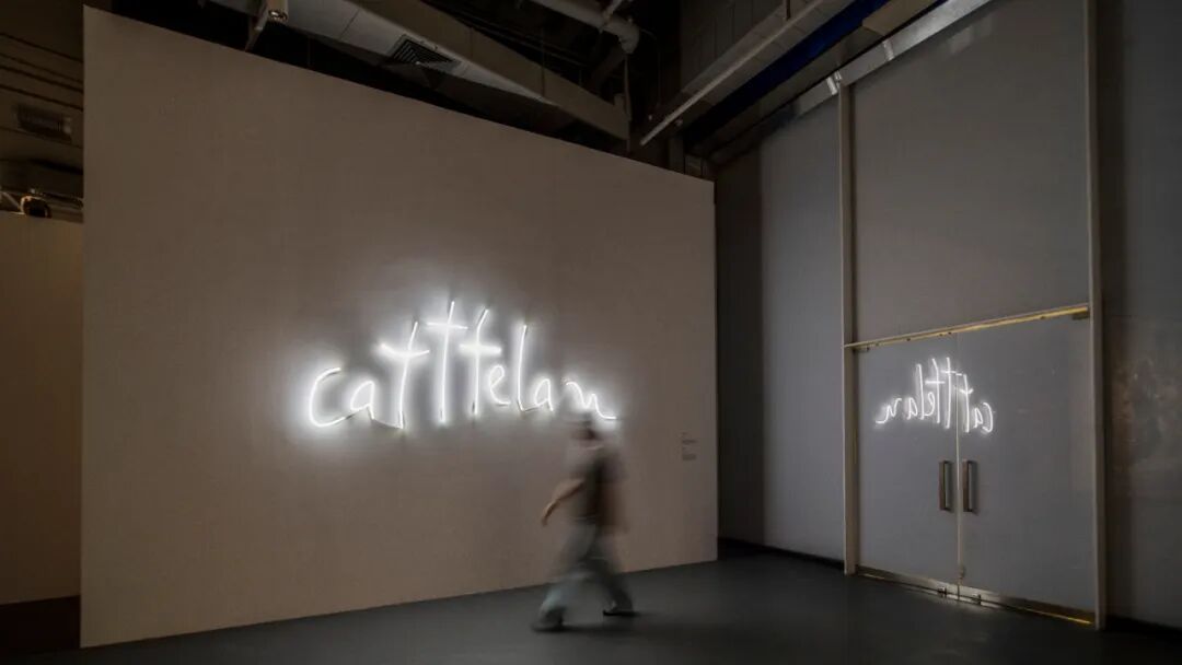 这就是卡特兰的魔力,他总能用你意想不到的方式,让你对艺术忍俊不禁,同时又肃然起敬。