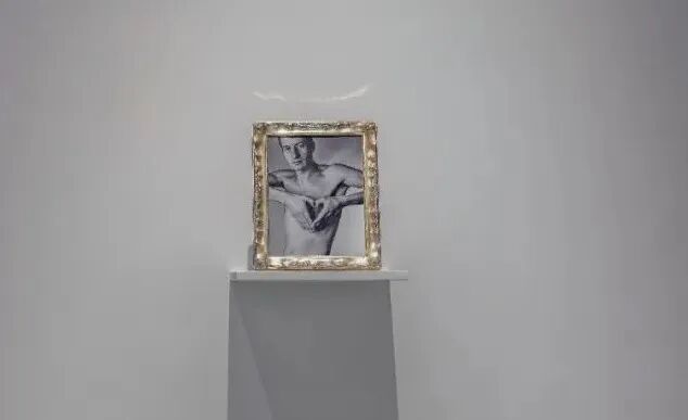 在现场,观众可以看到银色相框中双手比心的卡特兰。在作品《家庭词典》中,褪去衣物在胸口比心的卡特兰填满了这个相框圈起的中产阶级小天地,显得既可爱又让人局促。