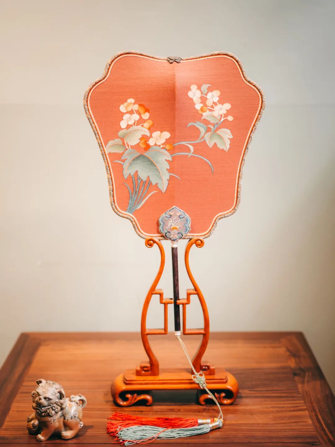 宫廷款海棠花缂丝团扇