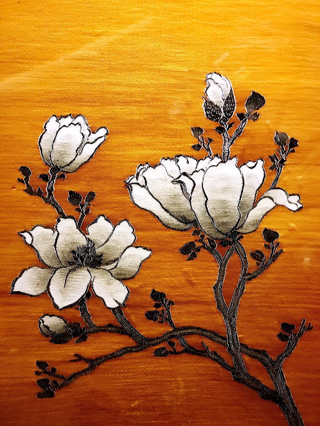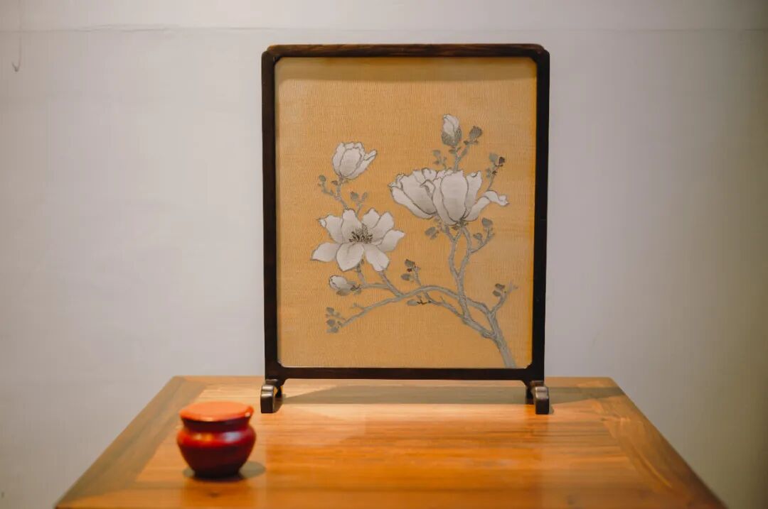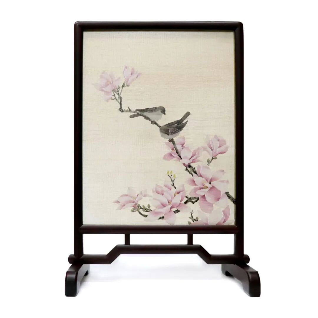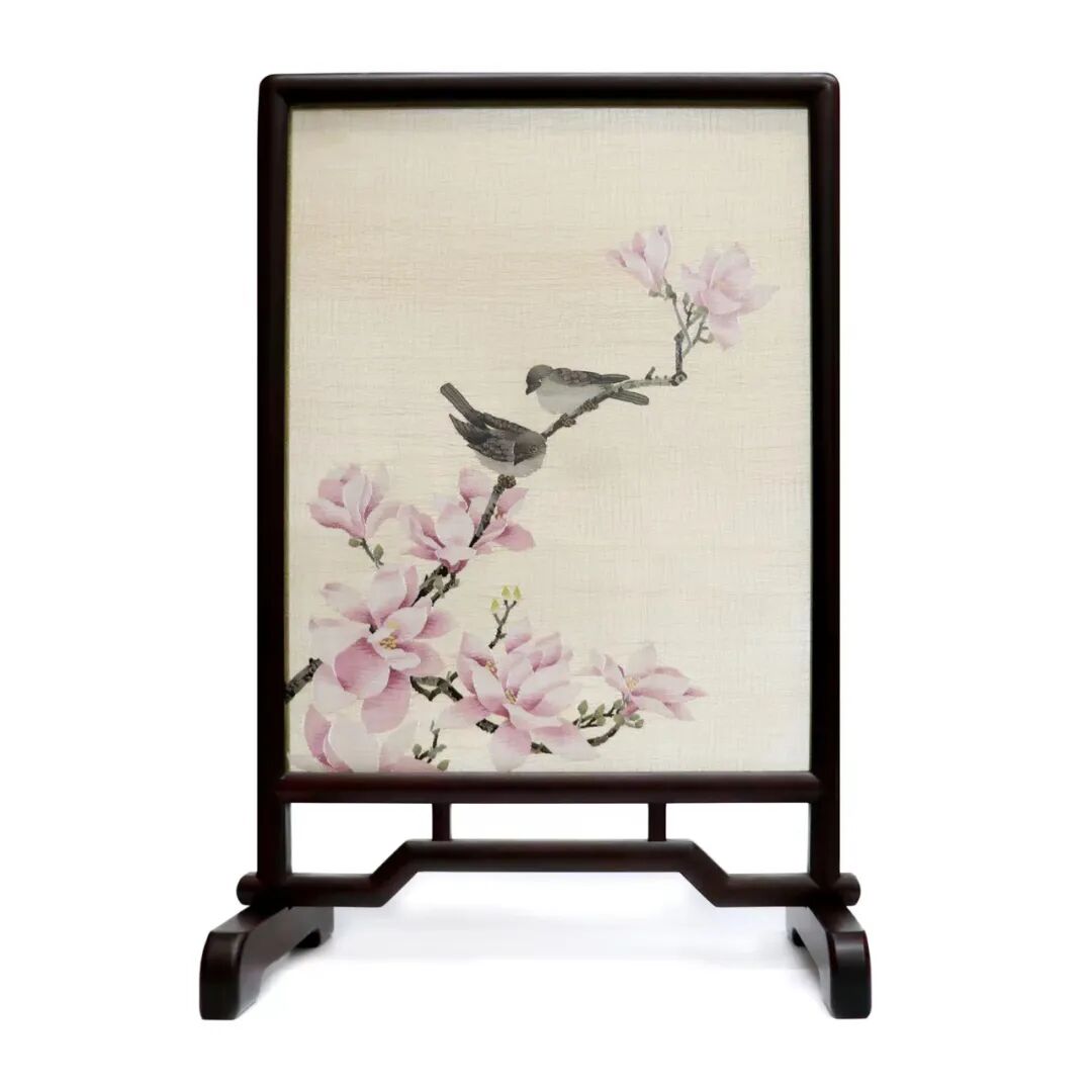 缂丝台屏-玉兰花