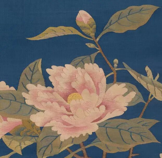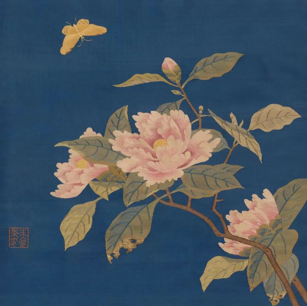 朱克柔(1139~1152)。幼习绘画与缂丝(也称刻丝),朱克柔积累配色和运线经验。她与定州的沈子藩等同为宋代缂丝名家。宋徽宗至高宗时期以织造缂丝著称于世,亦善画。其缂丝作品,题材广泛,风格清淡古雅,形象生动,为一时之绝技。《山茶蛱蝶图》为南宋缂丝名家朱克柔的传世作品,现收藏于辽宁省博物馆。在磁青色的地上,用彩纬缂织盛开出水红山茶花一枝,澹逸古雅。旁缀粉蝶,展翅轻盈,栩栩欲活。枝头枯叶,有虫咬痕,尤为精绝。左刻朱文[朱柔印]右铃[令之清玩]朱文印一。对幅,白纸本。明文彦可题云[朱克柔,云间人。宋思陵时,以女红行世。人物,树石、花鸟,精巧疑鬼工,品价高一时。流传至今,尤成罕见。此尺幅古澹清雅有胜国诸名家风韵,洗去脂粉。至其运丝如运笔,是其绝技,非今人所的梦见也。