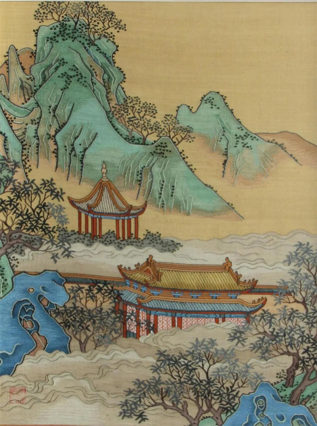缂丝仙山亭台图2