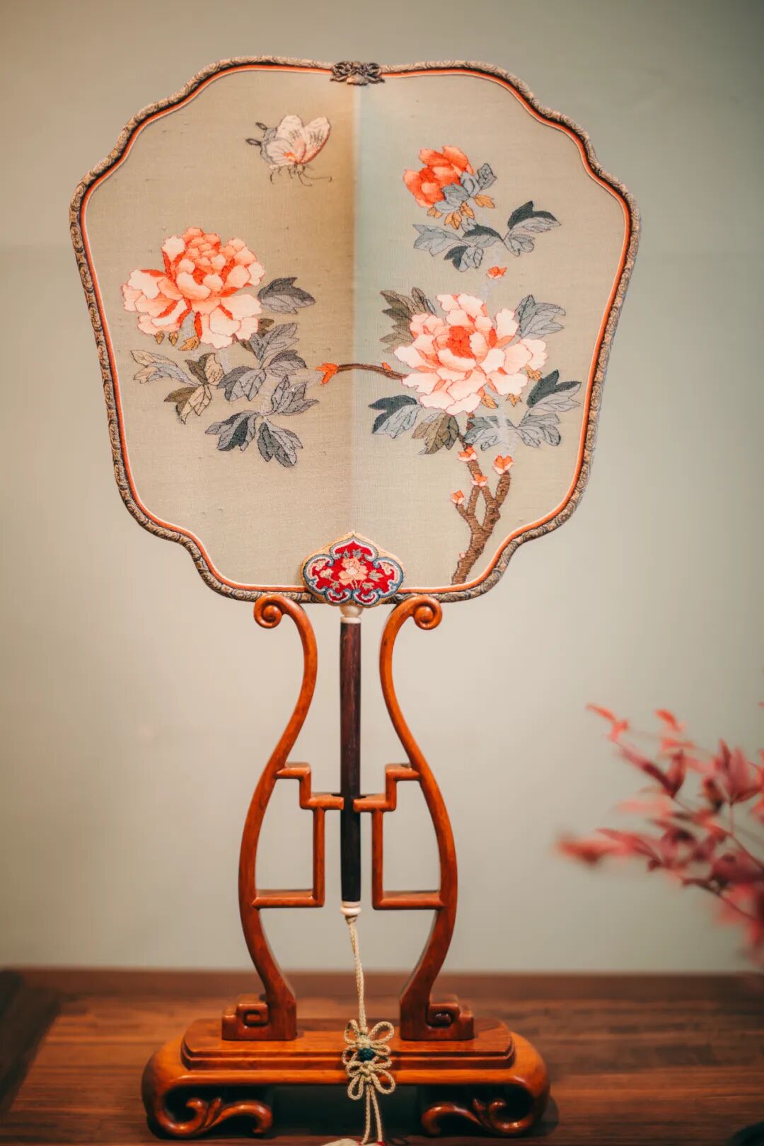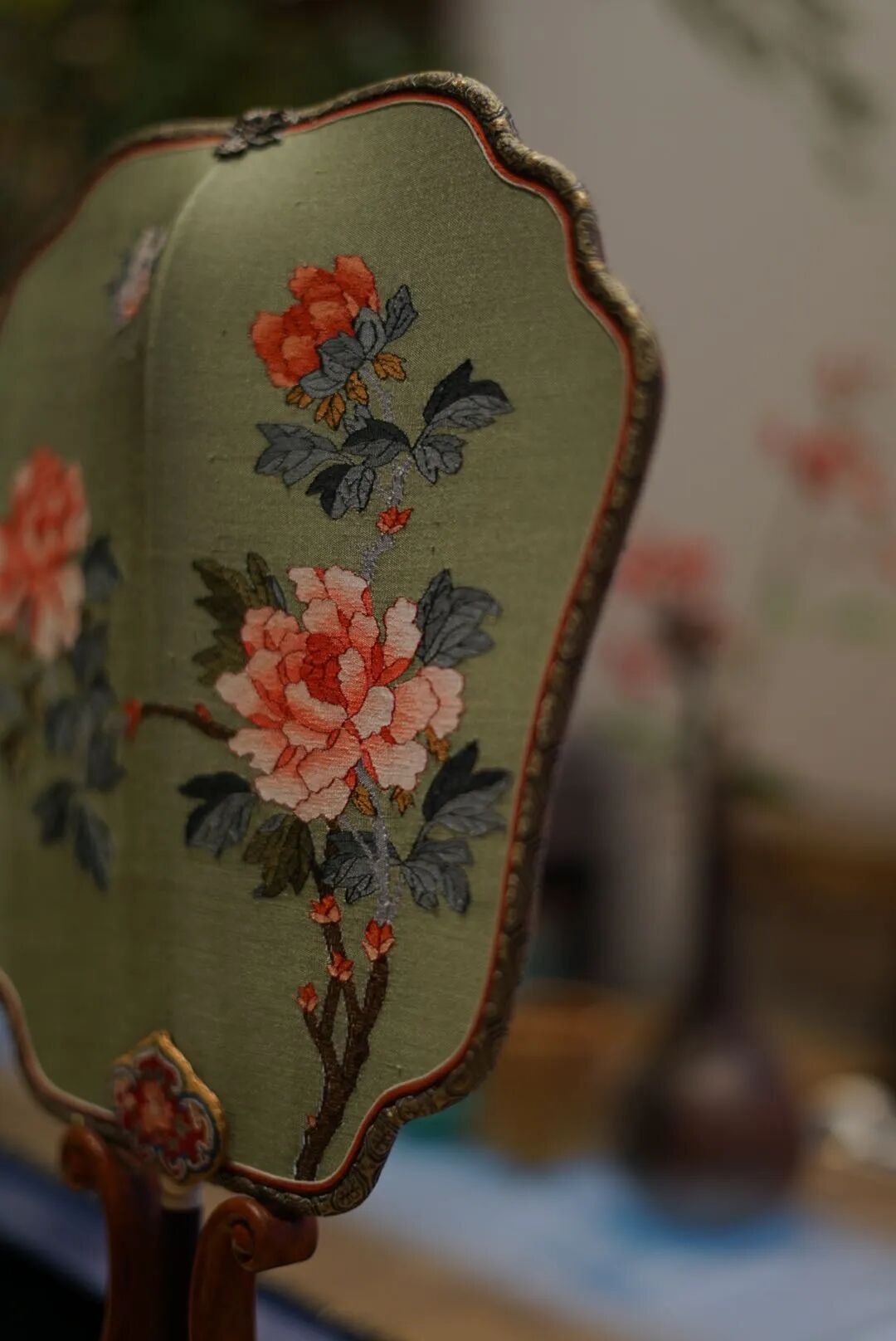 宫廷款富贵牡丹缂丝团扇