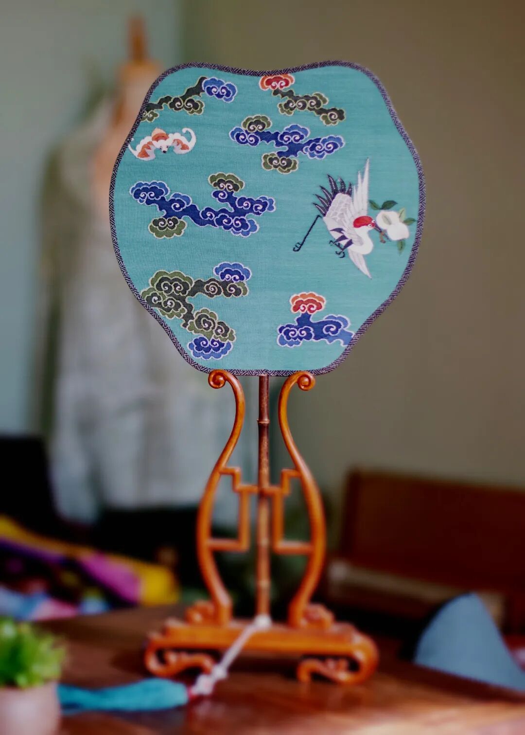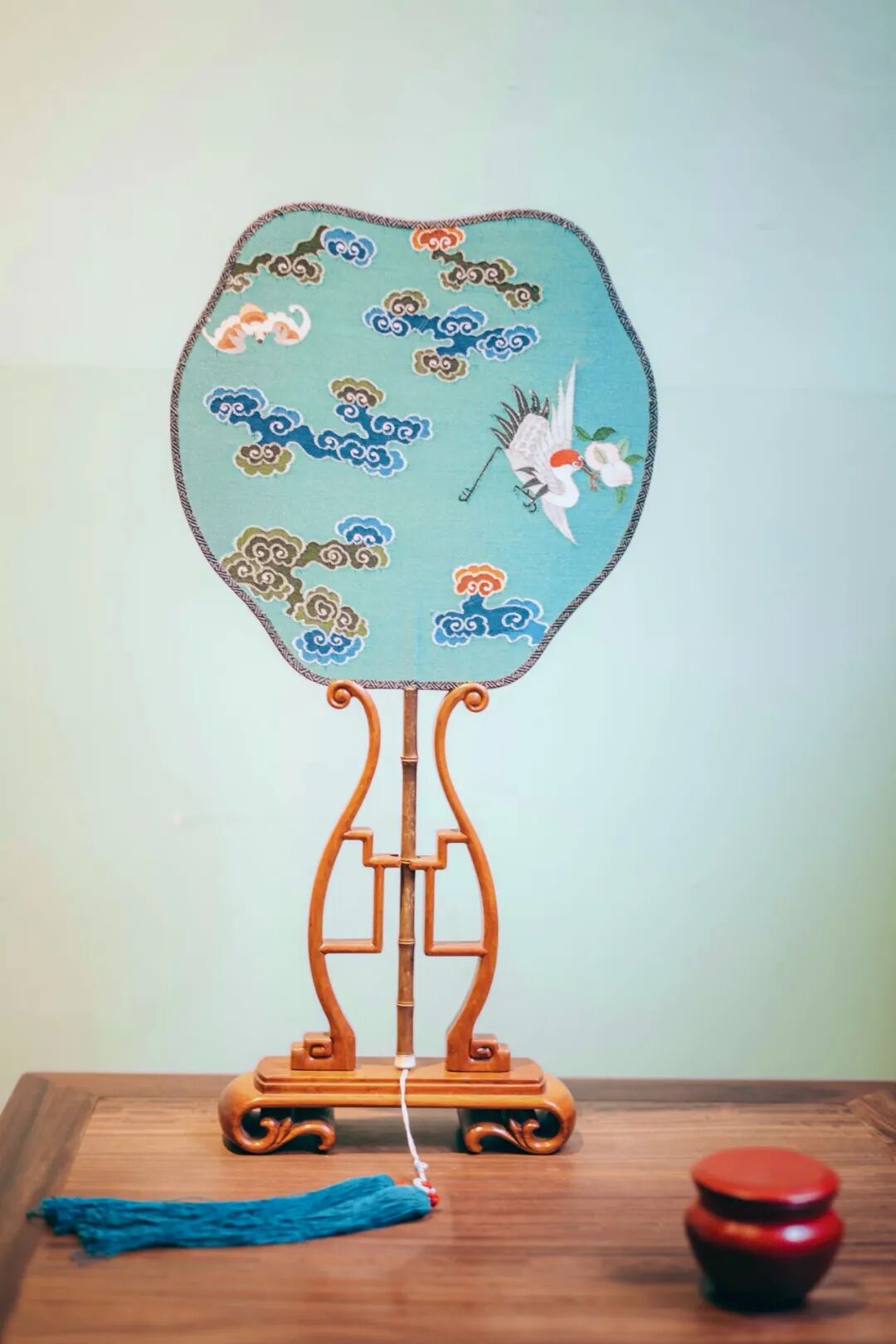 绿地祥云仙鹤缂丝团扇