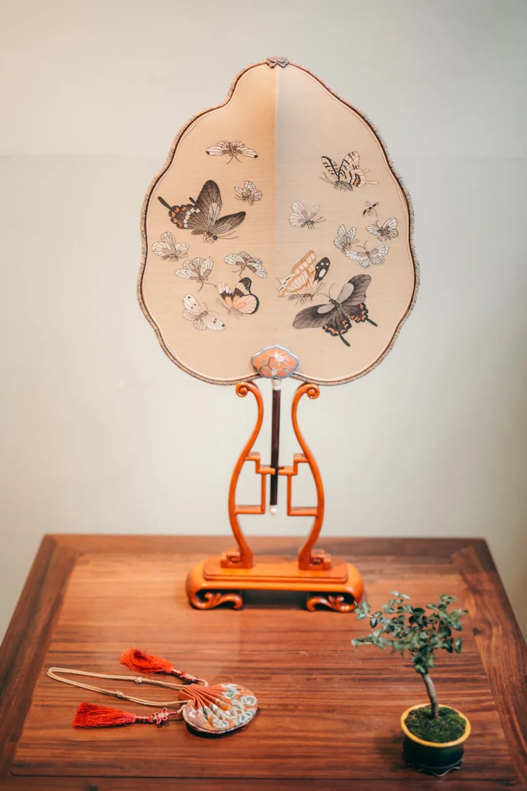 宫廷款桃形蝴蝶缂丝团扇