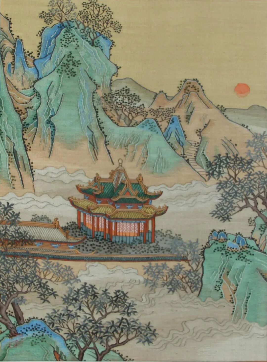 缂丝仙山亭台图1