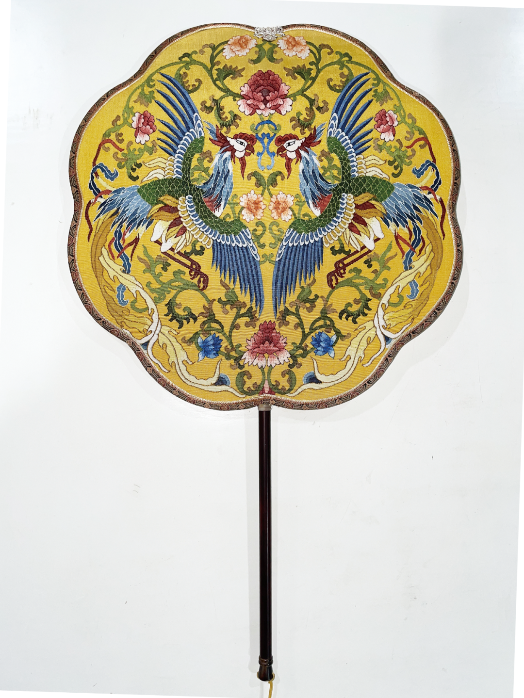 宫廷款凤穿牡丹缂丝团扇