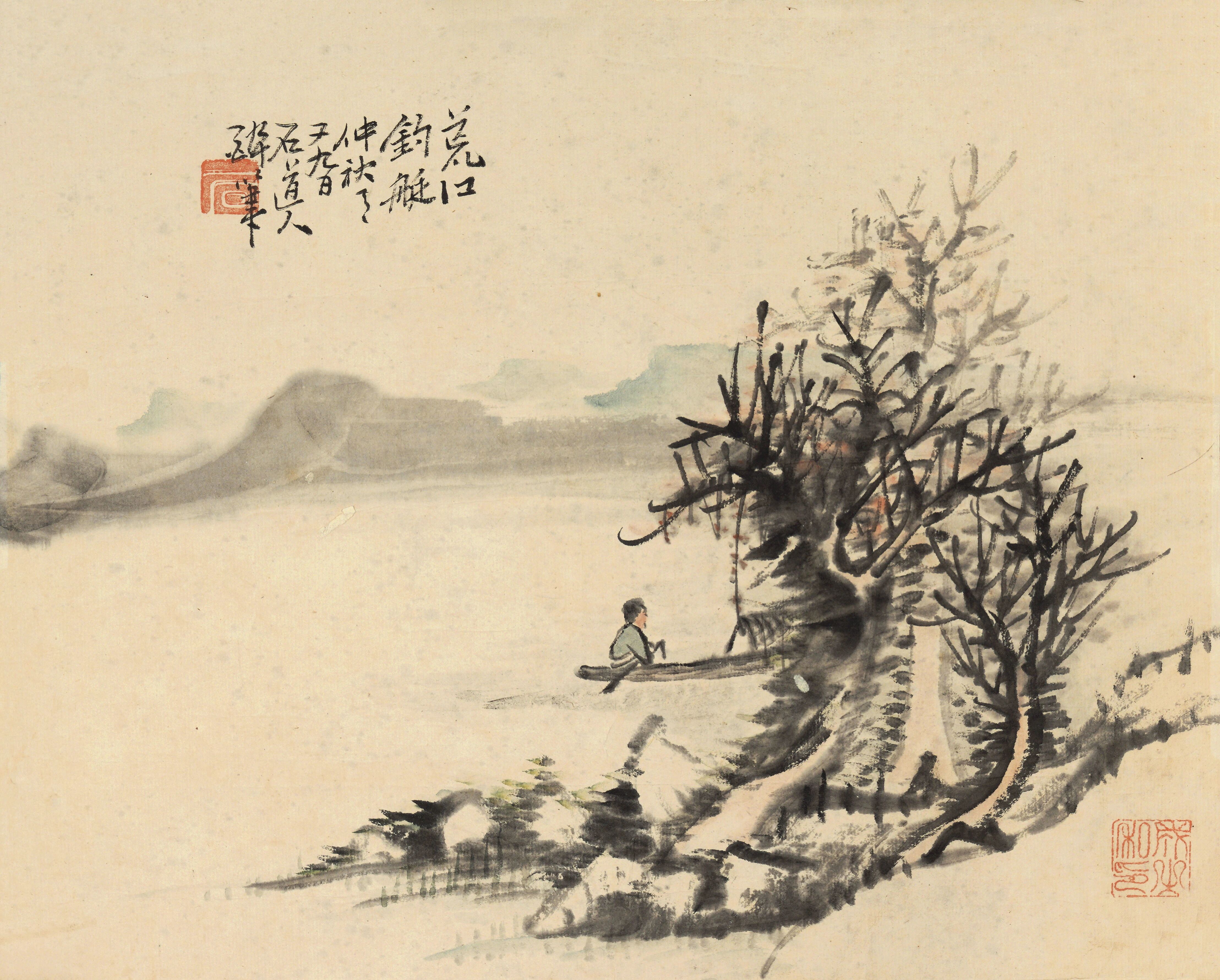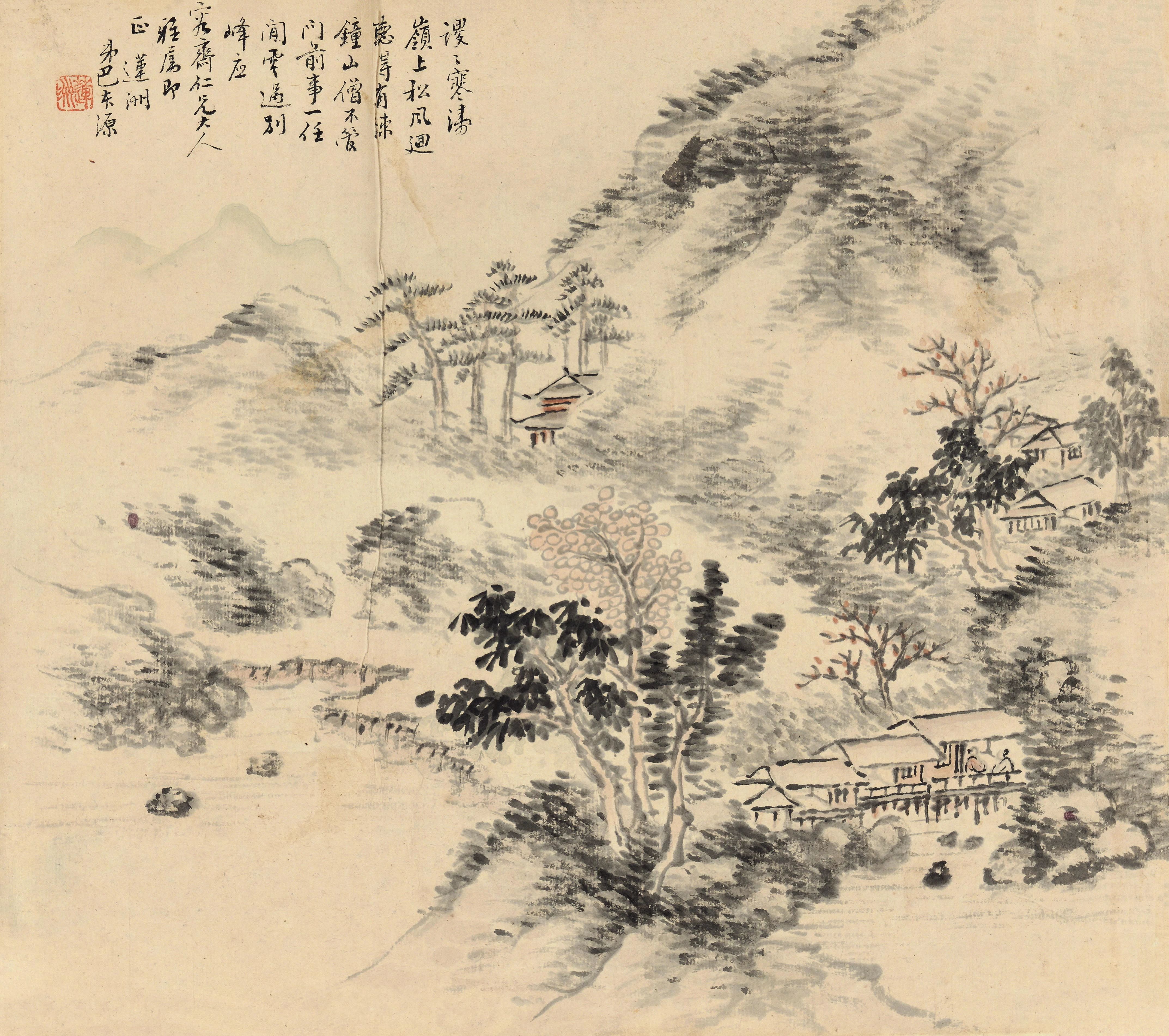 款识:甲辰(1904年)春日,容斋仁兄大人出纸嘱画,因勉为之,以博一粲。渔村散人巴本源并识。