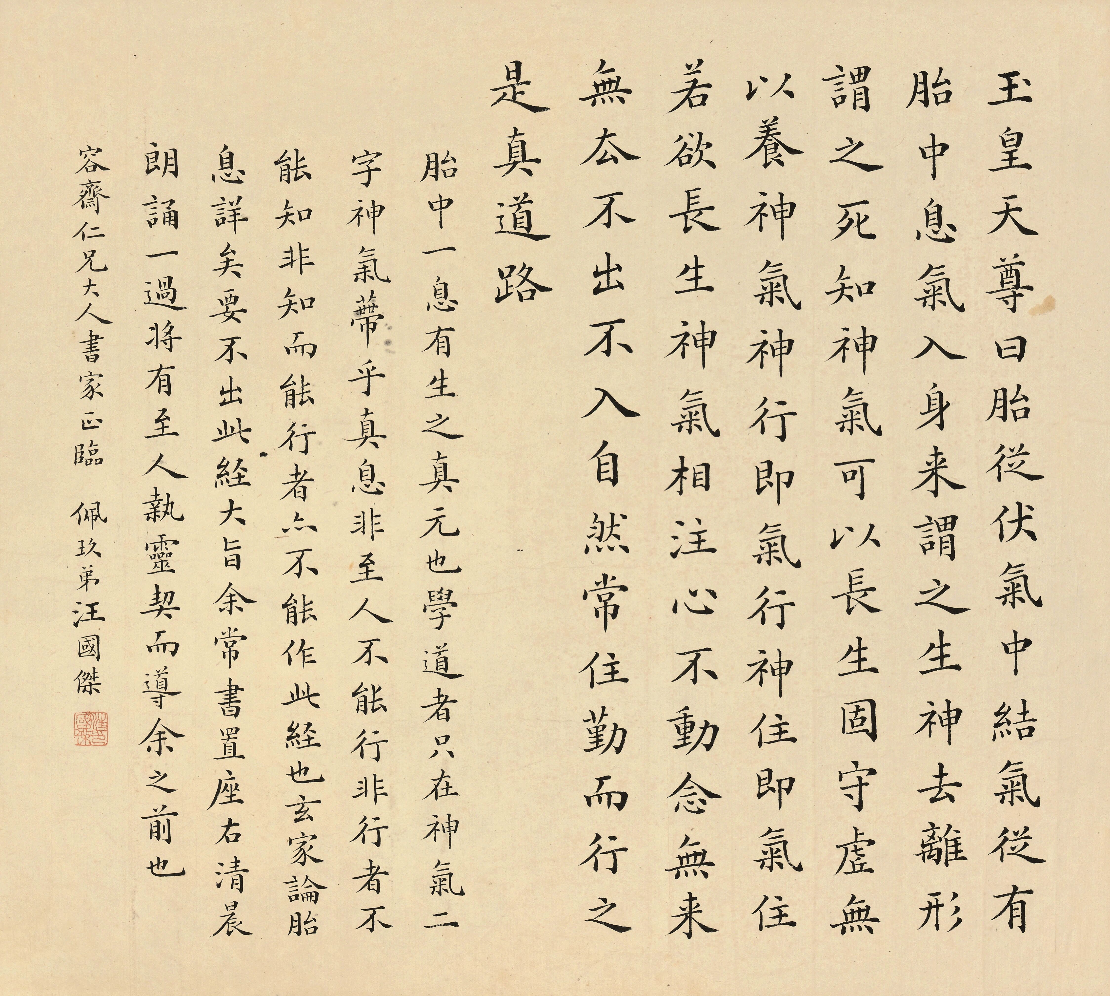 款识:容斋仁兄大人书家正临,佩玖弟汪国杰。